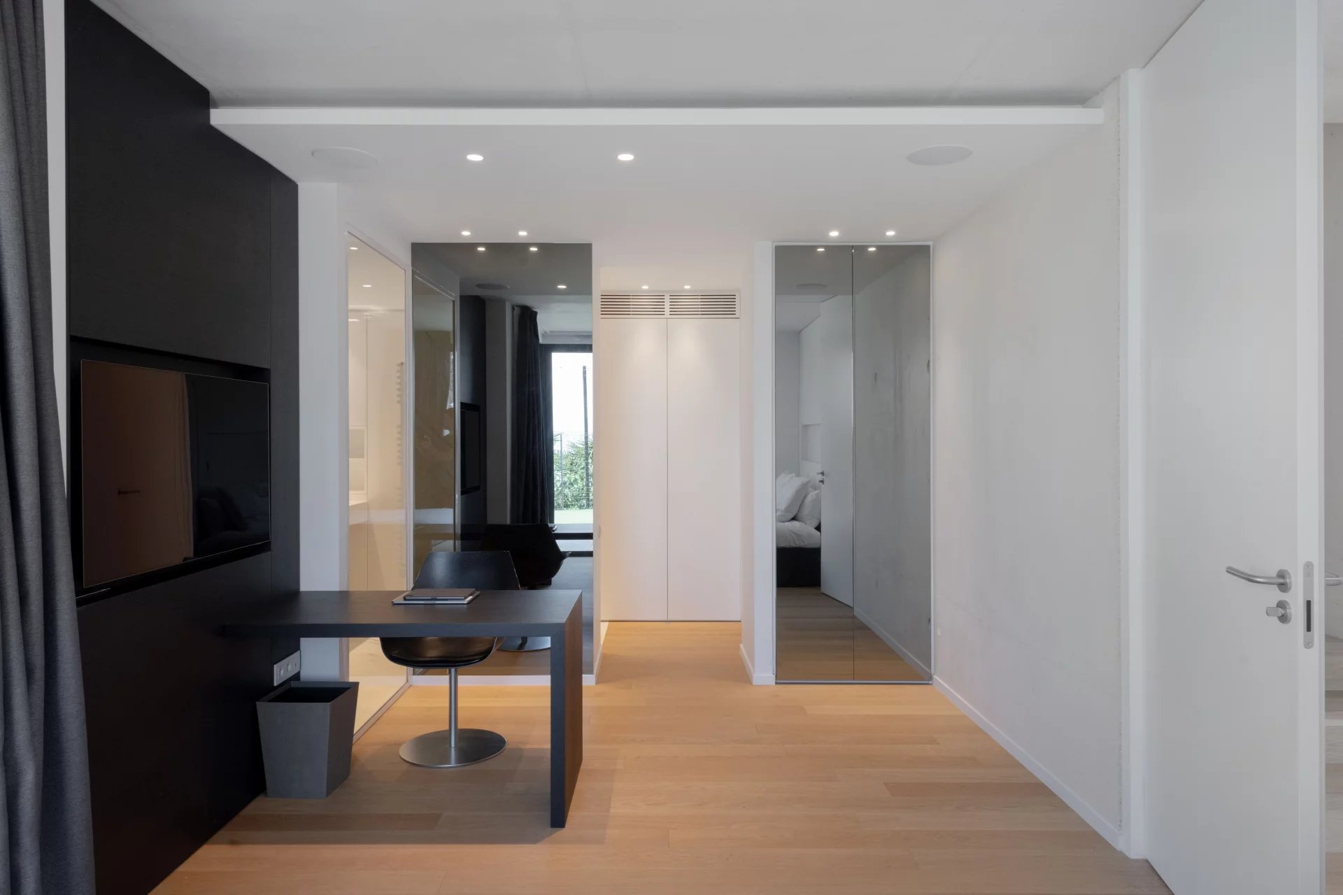 The second offers two suites, one of which is a master with bathroom and shower, a study and dressing room with direct access to the outdoor swimming pool. The second has a shower room and plenty of storage space.