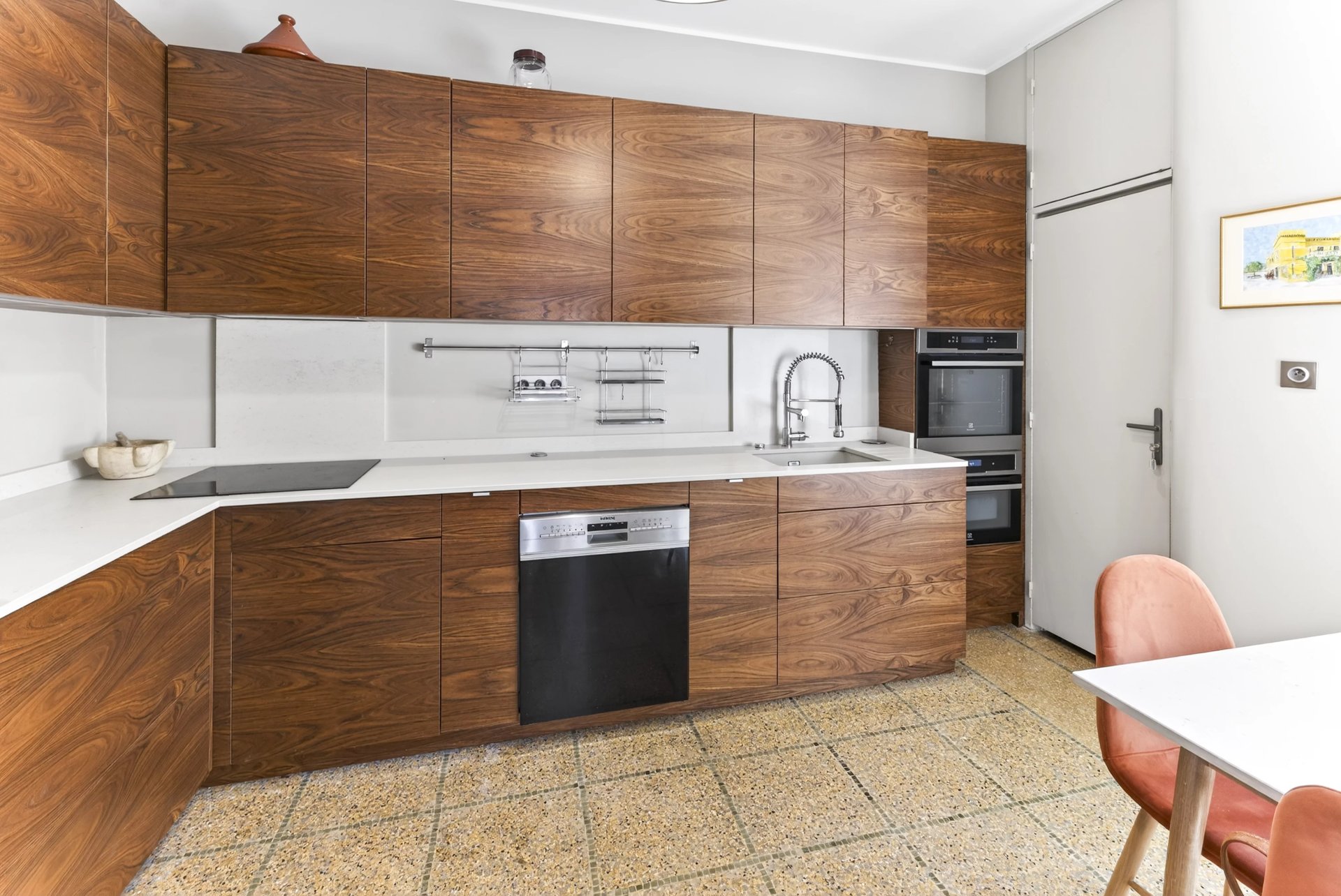 A 200 m2 terrace houses three cellars, while a 150 m2 rooftop, accessible by elevator or staircase, enjoys panoramic views over the Bay of Marseille and its islands.