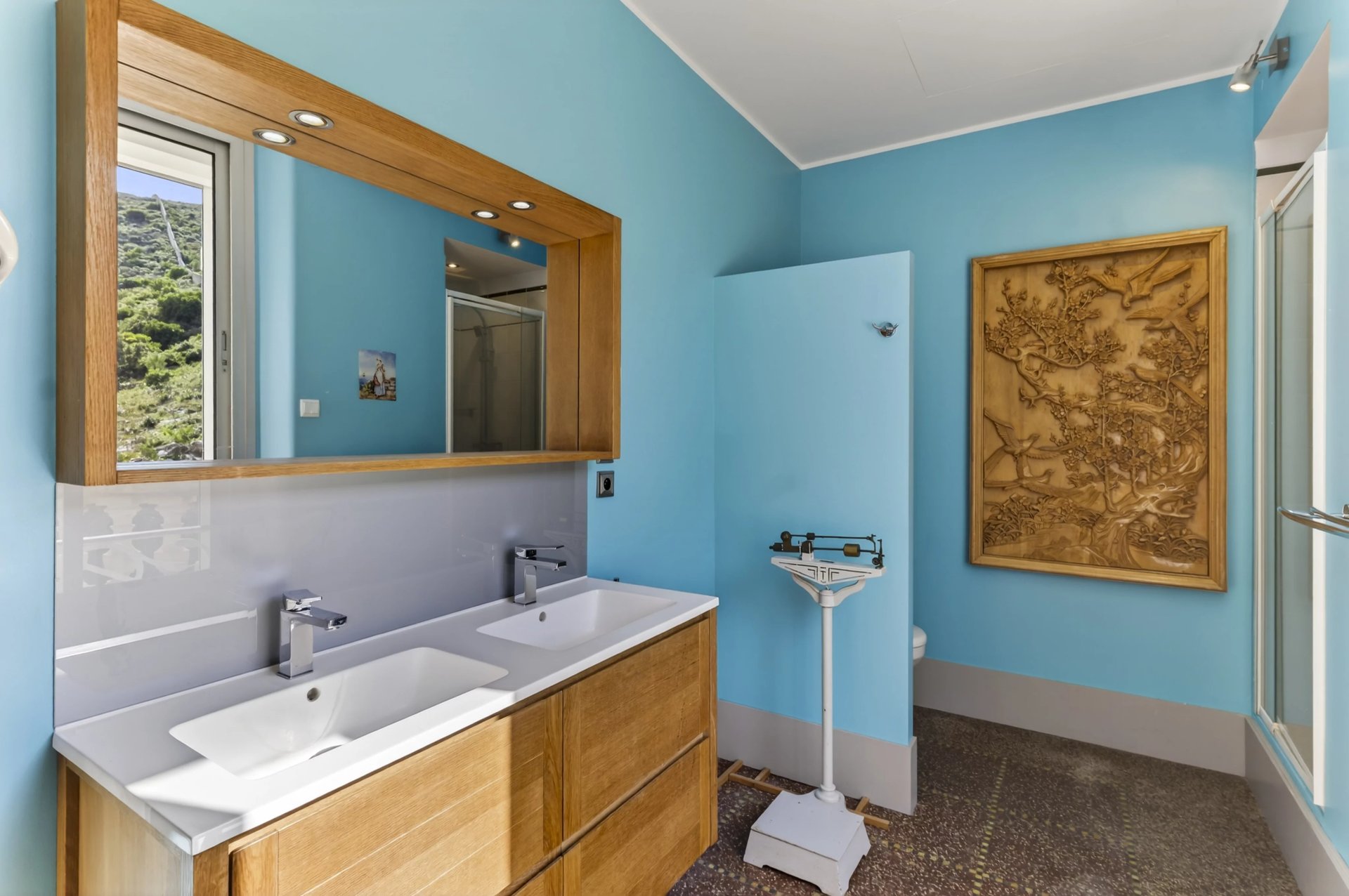 Hidden from view, a large south-facing swimming pool (13 x 7 m) blends seamlessly into the Mediterranean vegetation.
