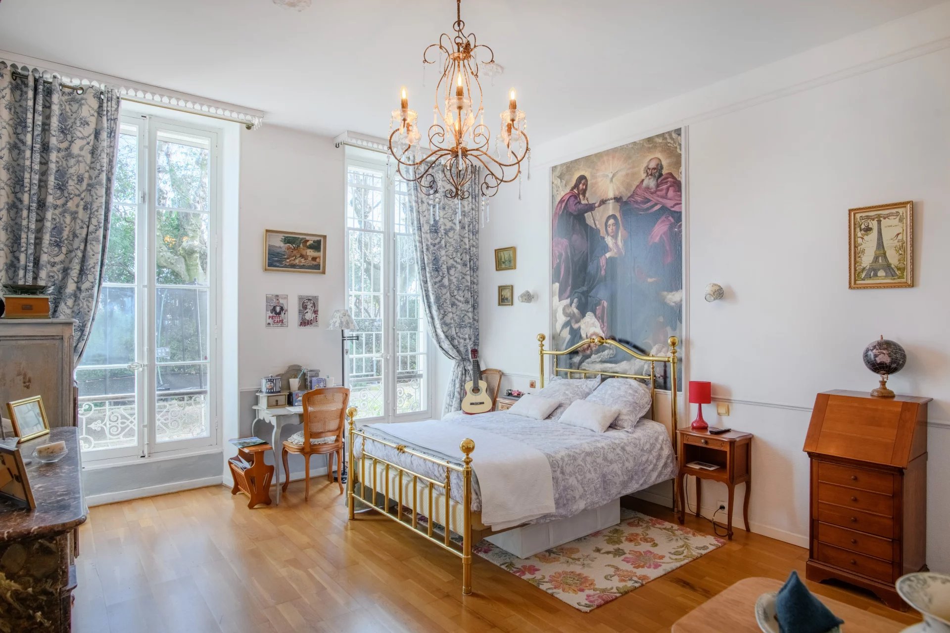 Spanning approximately 285 m2 of living space across two levels, the home is set within a beautifully landscaped park planted with mature trees—an intimate green haven shielded from view. The interiors are distinguished by generous volumes, abundant natural light, tall ceilings, and carefully preserved period features, enhancing its historic charm.