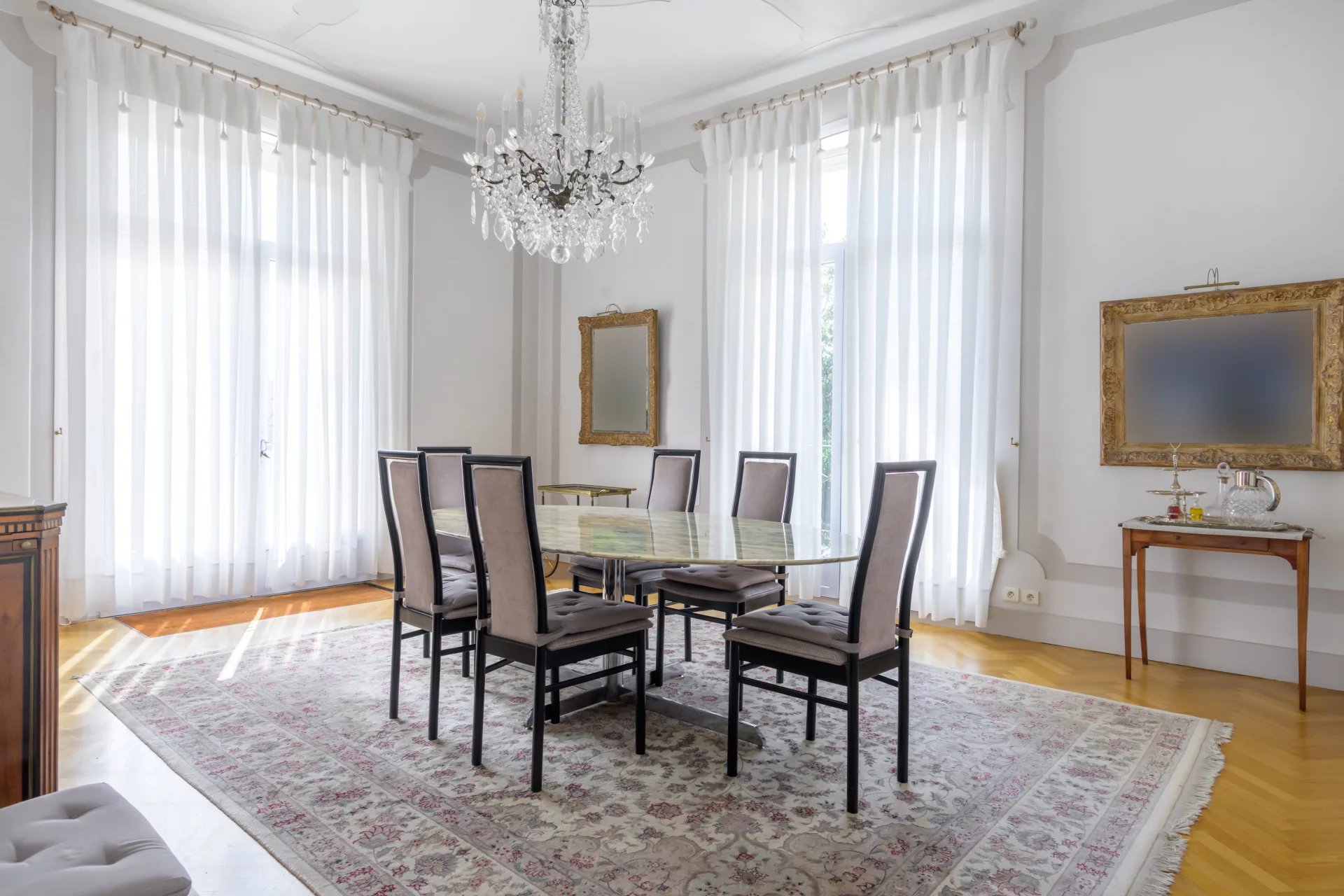 Built in 1911, the property has preserved all the elegance of its era with original period features including grand staircases, ornate moldings, fireplaces, and parquet floors. Bathed in natural light and oriented full south, the mansion develops approximately 500 m2 of living space across four levels, served by a discreet interior elevator.