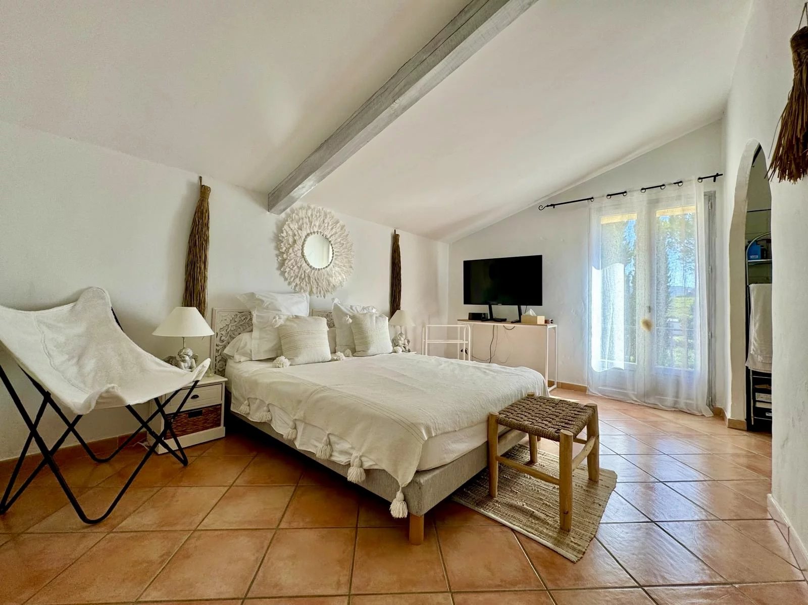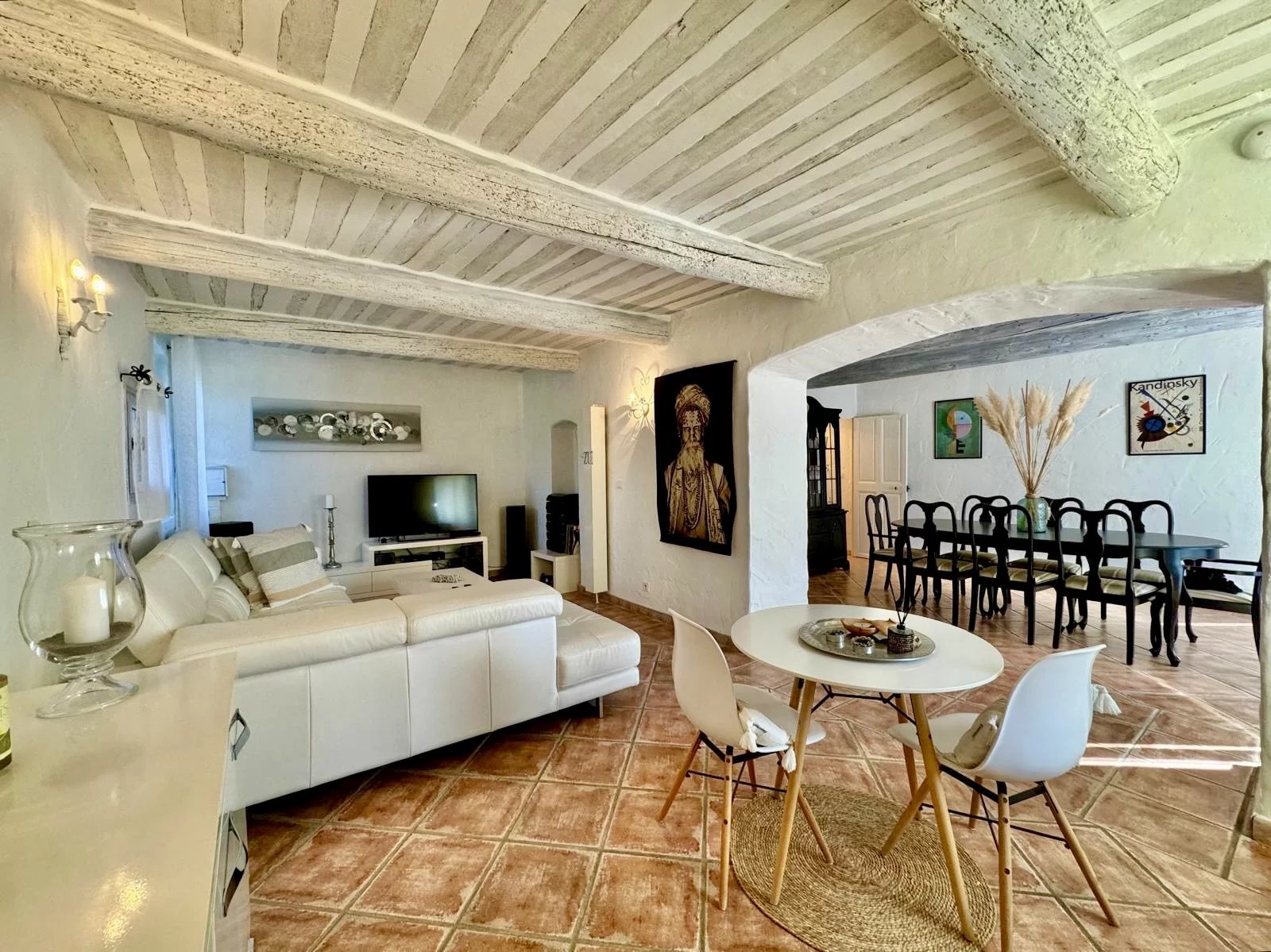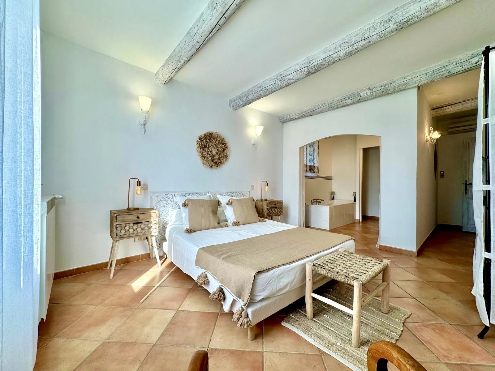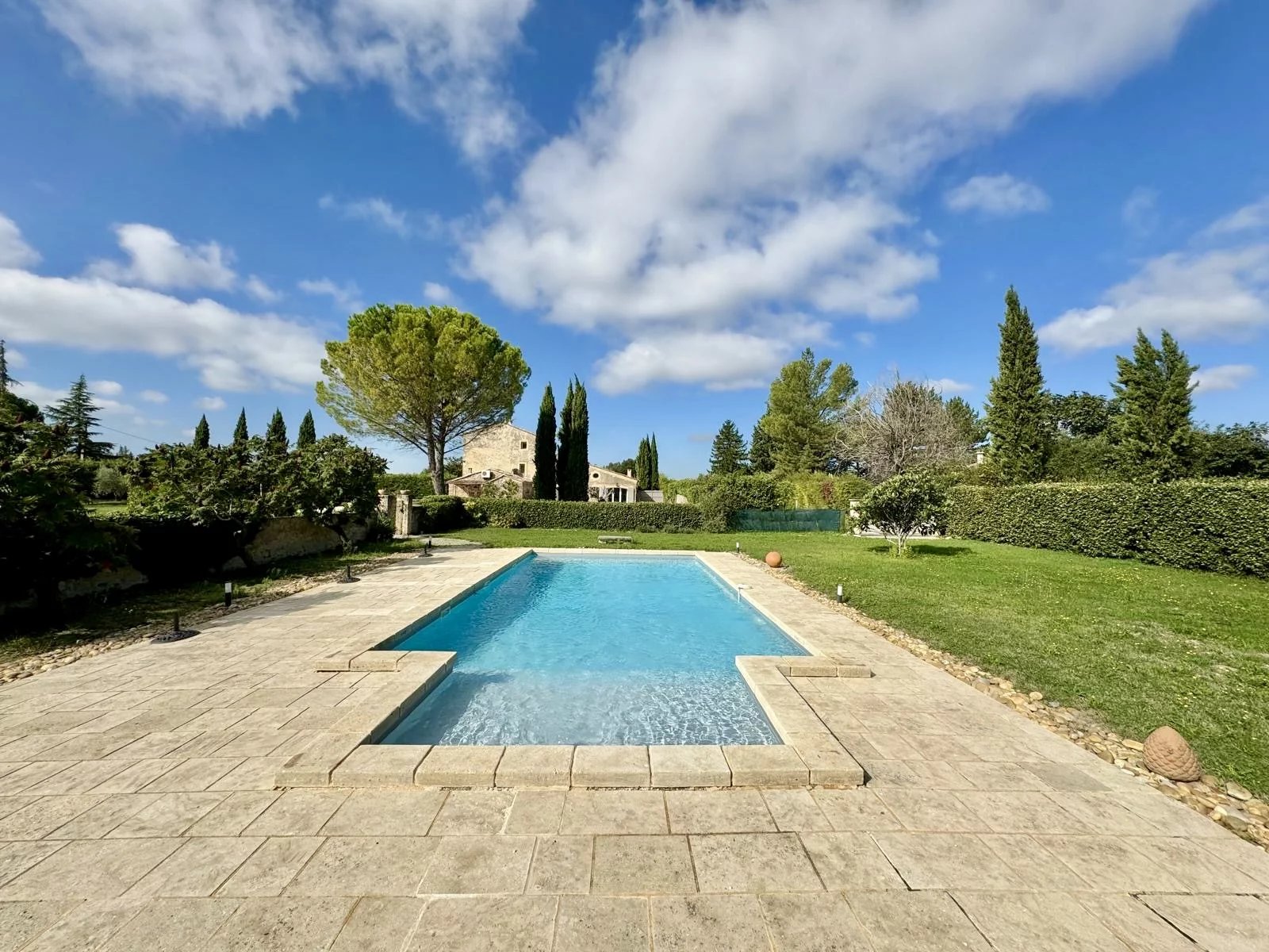 Just a few steps from its charming Proveníçal village, this authentic farmhouse offers an idyllic setting and a majestic view of Mont Ventoux. The true spirit of Provence reveals itself through the stone, the light, and the surrounding landscapes.