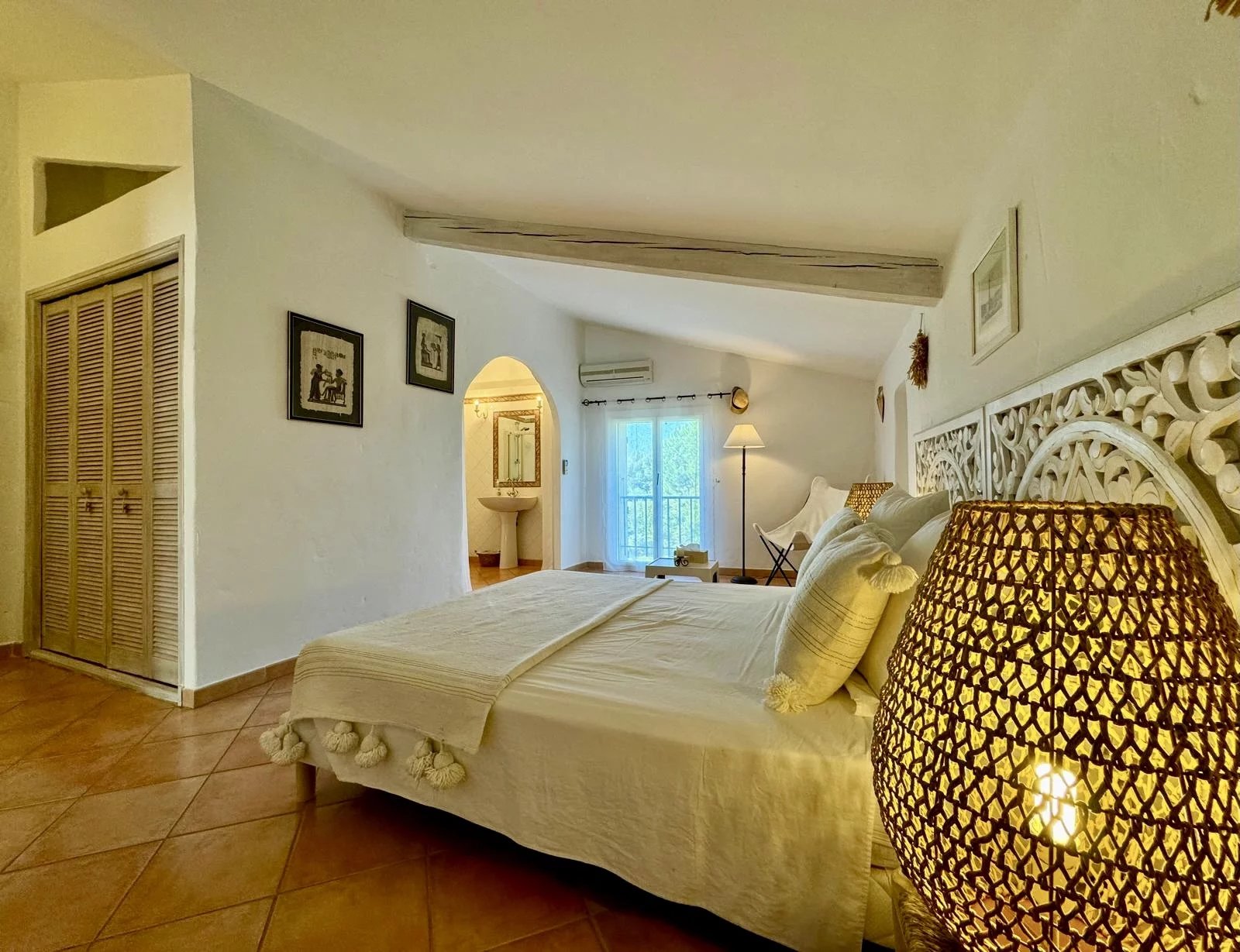 Outside, the beautifully landscaped garden extends to a splendid pool area (12 x 5 m). A large parking area can accommodate around six vehicles.