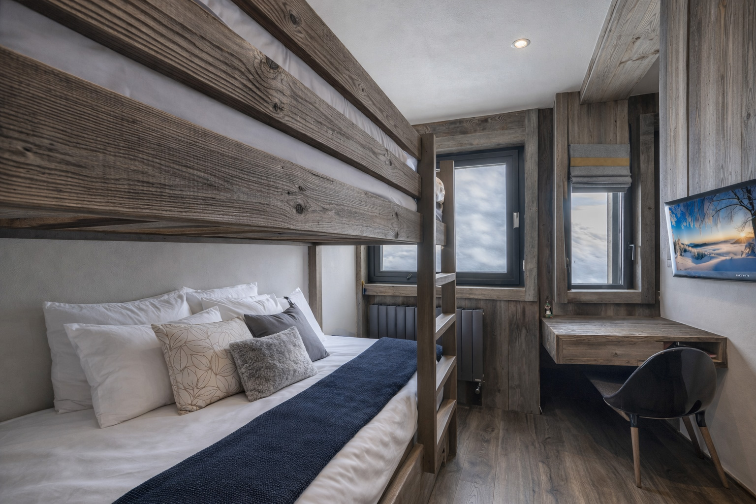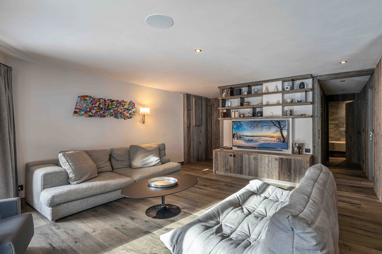 Just a 15-minute walk from the center of Megève village, this beautiful apartment will charm you with its high-quality renovation, completed in 2018 by a renowned company, and its prime location. Situated in a sought-after condominium complex with a swimming pool and tennis courts, the apartment offers a perfectly optimized living space of 55 sq m. The light-filled living room opens onto a balcony, ideal for relaxation. The sleeping area comprises a comfortable double bedroom and a children’s bedroom. A dressing room, a bathroom, a separate WC, and ample built-in storage complete the layout of this property. Additional features include two ski lockers, two cellars, and an underground parking space. This property is subject to condominium ownership regulations. No legal proceedings are currently underway.