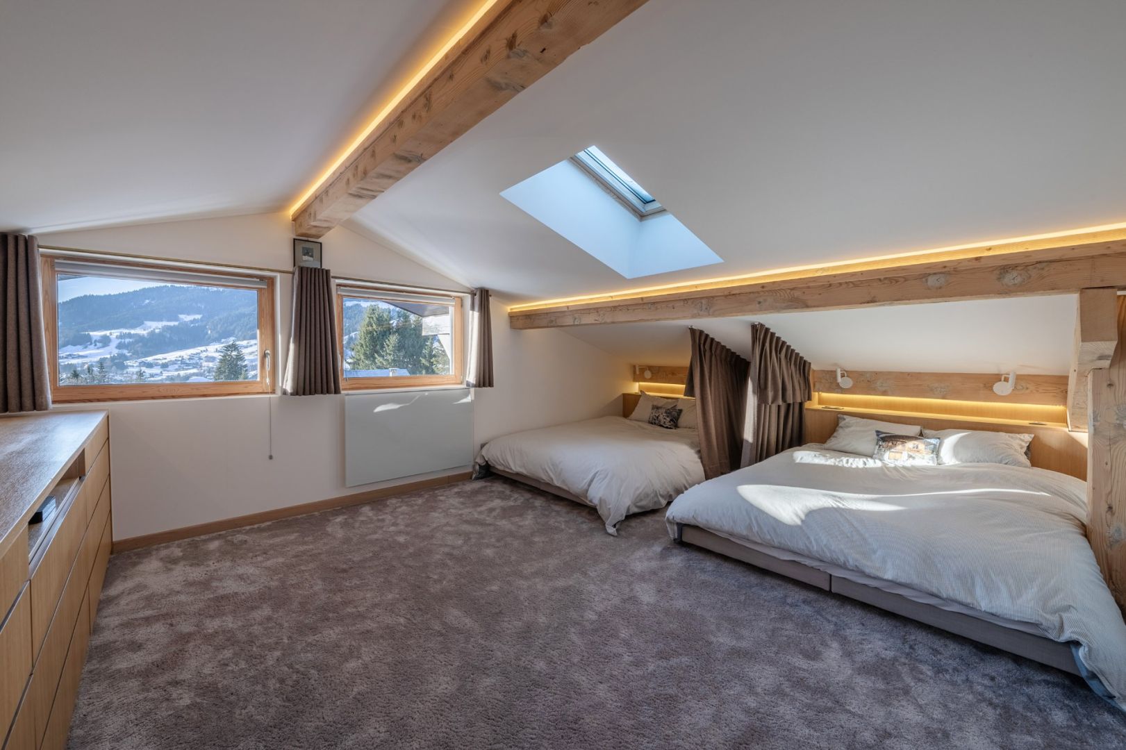 Duplex apartment with a surface area of 58.89 sq.m under the Carrez law and a total surface area of 85 sq.m located on the top floor of a small luxury three-bedroom residence in a highly sought-after area of Megève. Just a stone’s throw from the village centre and the start of the Chamois cable car, this property enjoys a prime location. The flat has been completely refurbished with quality materials and space optimisation. Sold with outdoor parking space, ski locker and cellar and panoramic views.