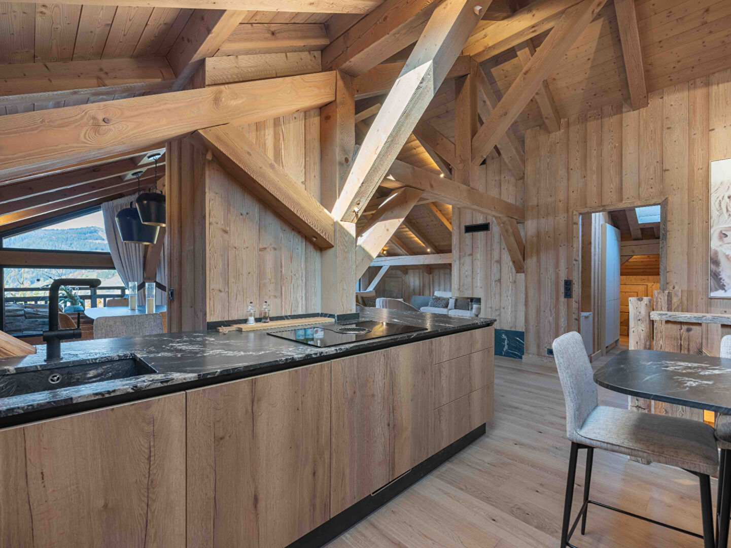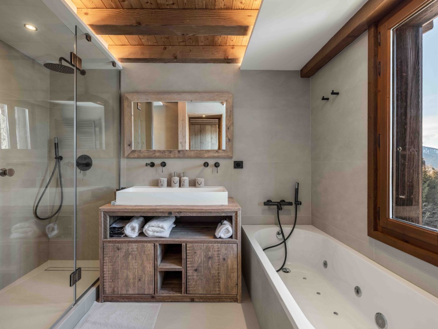 Located close to Mont d’Arbois, this exceptional duplex flat – half-farmhouse offers a surface area of 190.39 sqm. Carrez and 230 sq.m in total. Made using high-quality materials, it features a meticulous renovation, combining comfort and refinement. The property comprises 5 en suite bedrooms, including a dormitory, each with its own intimate and spacious space, ideal for welcoming family and friends. The living area on the top floor comprises a spacious living room, a reception room with fireplace, an open-plan fitted kitchen and a utility room offering breathtaking panoramic views of the surrounding mountains, allowing you to enjoy a unique living environment. The flat enjoys a privileged location overlooking Megève, which adds to its exceptional character. This rare product is waiting to be discovered, an exceptional property combining luxury, comfort and proximity to the slopes of the Domaine Evasion Mont-Blanc or the golf course in summer.