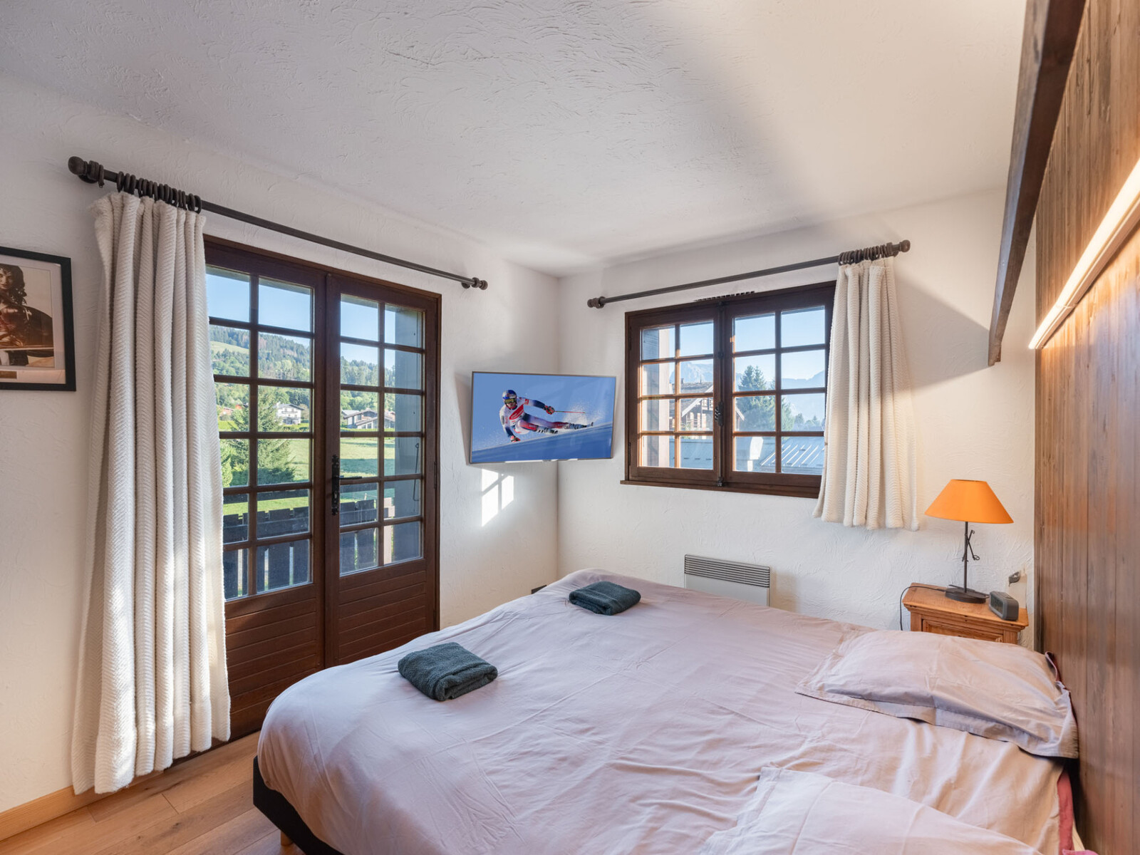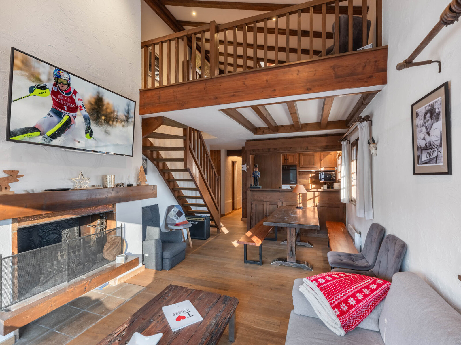 Just a few minutes’ walk from the center of Megève, this 110 sq.m duplex apartment (73 sq.m under Carrez law) impresses with its brightness and spacious layout. The large cathedral-style living room, featuring a fireplace, opens onto a south-east facing corner balcony with stunning open views. The independent kitchen is fully equipped. The apartment offers two comfortable bedrooms, one of which has a balcony with beautiful views of the Jaillet, as well as a mezzanine with a TV area and a spacious additional bedroom. Two shower rooms—one on the ground floor and one upstairs—along with separate toilets complete the living spaces.