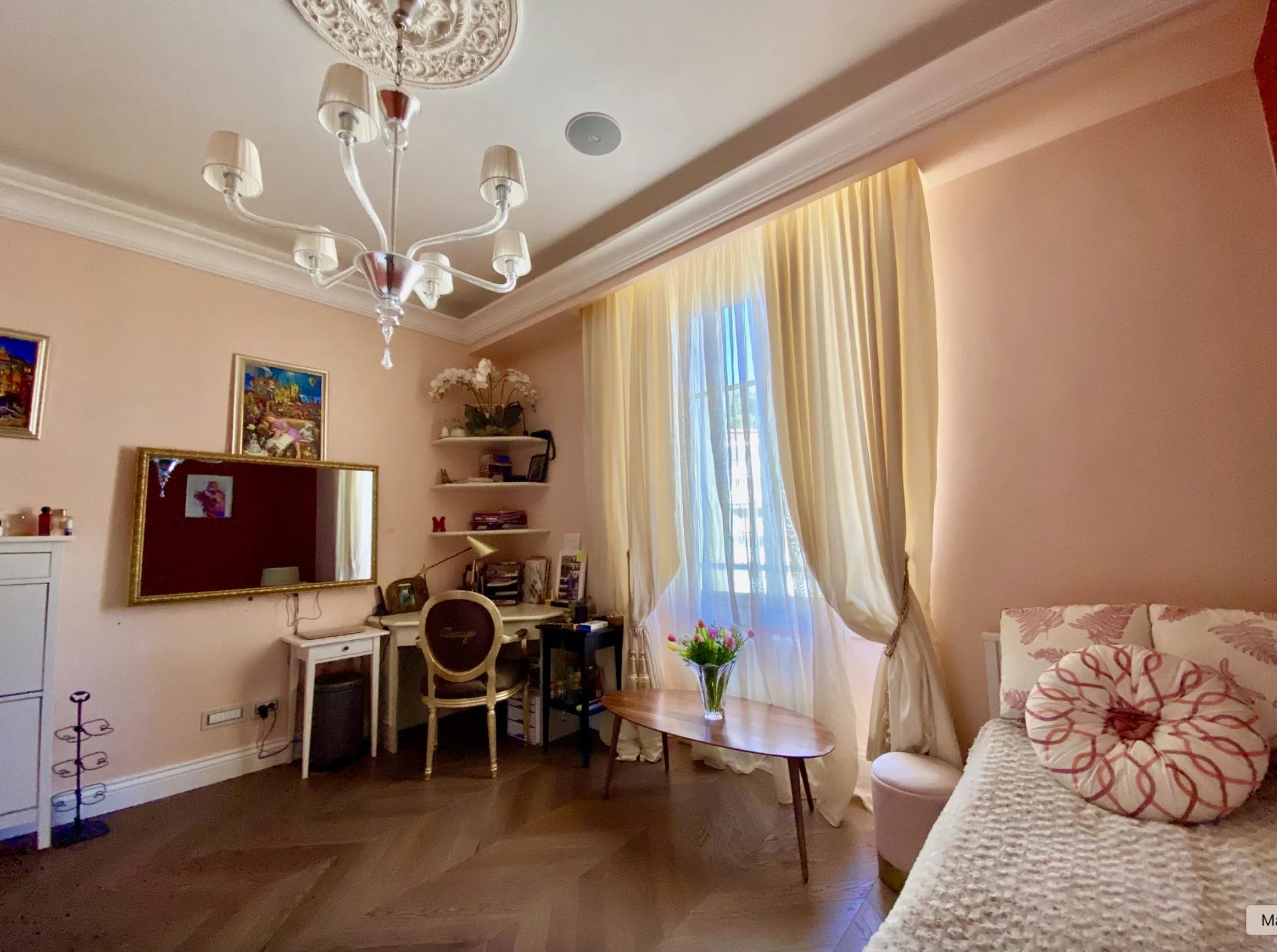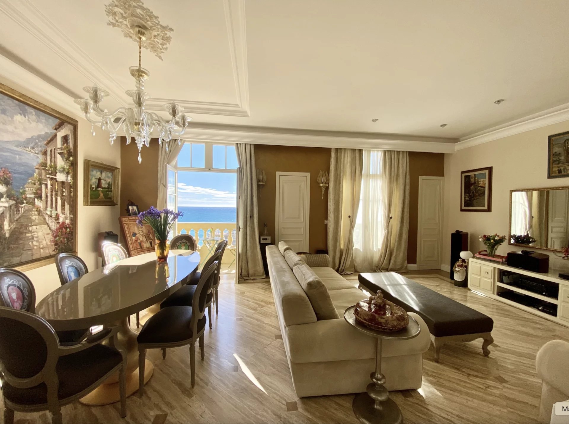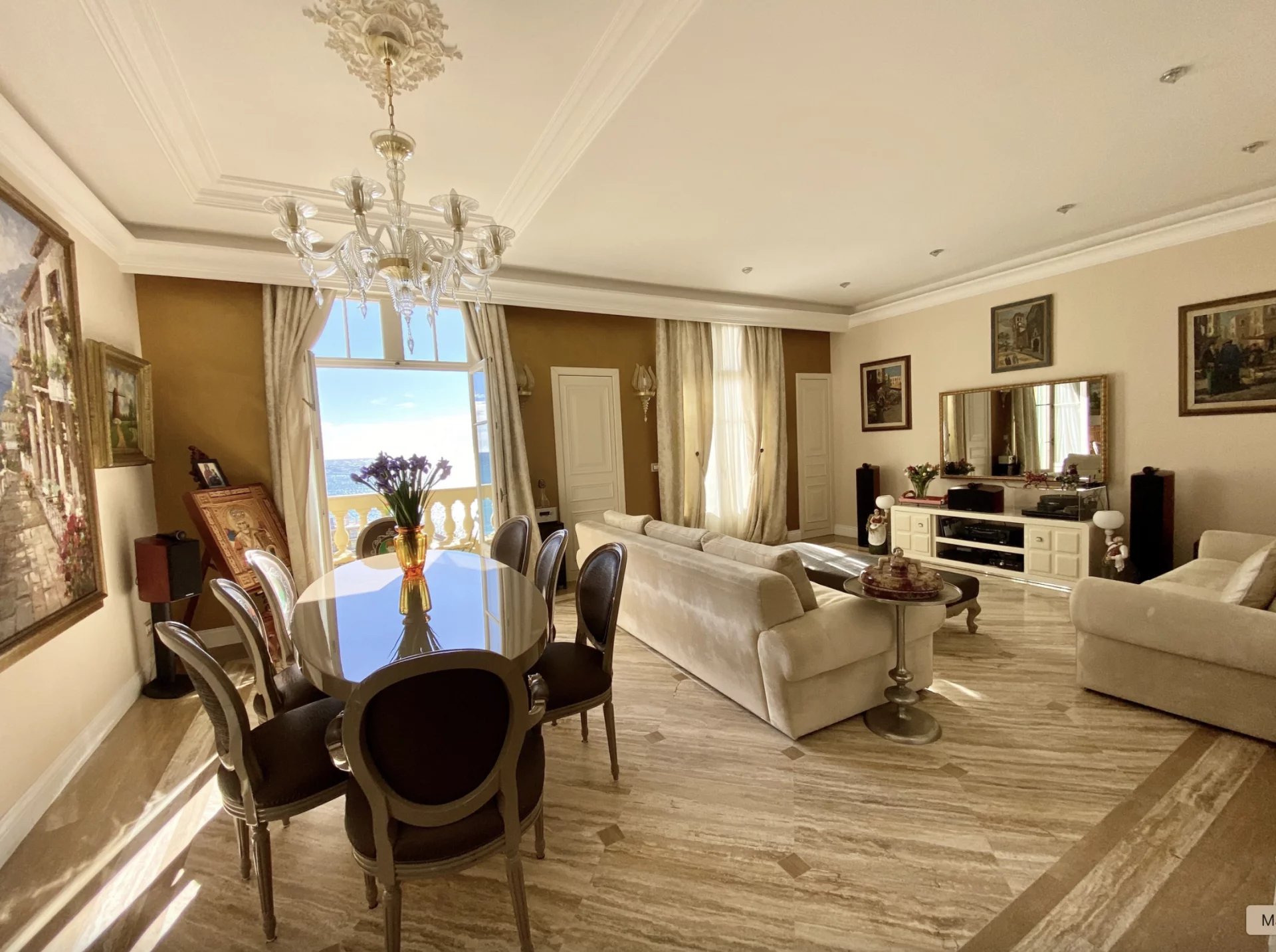 Located in a prestigious 18th-century building with park, on the 6th and top floor, this bright traversing apartment of approx. 140 m2 offers breathtaking panoramic views of the sea and the mountains.