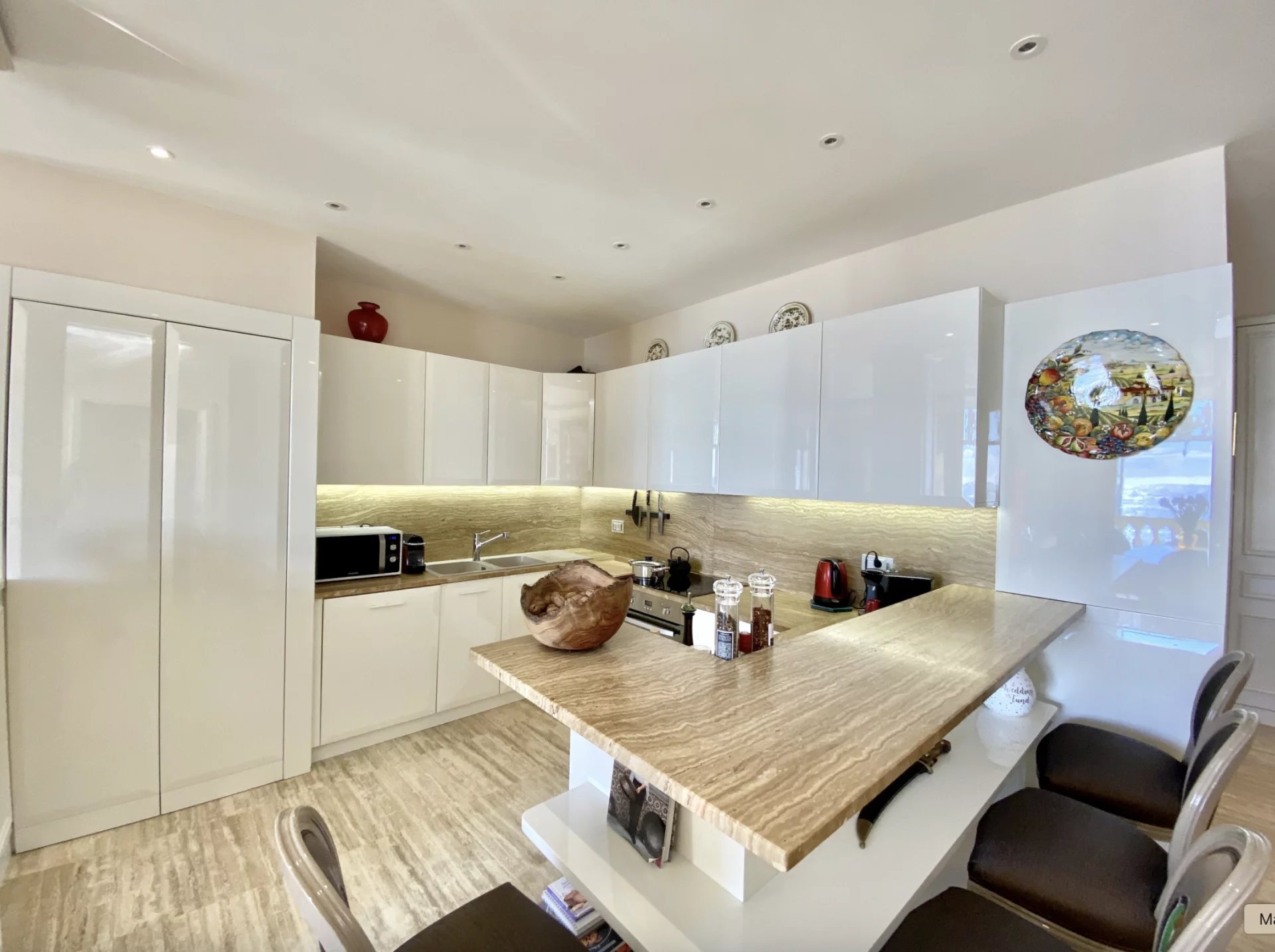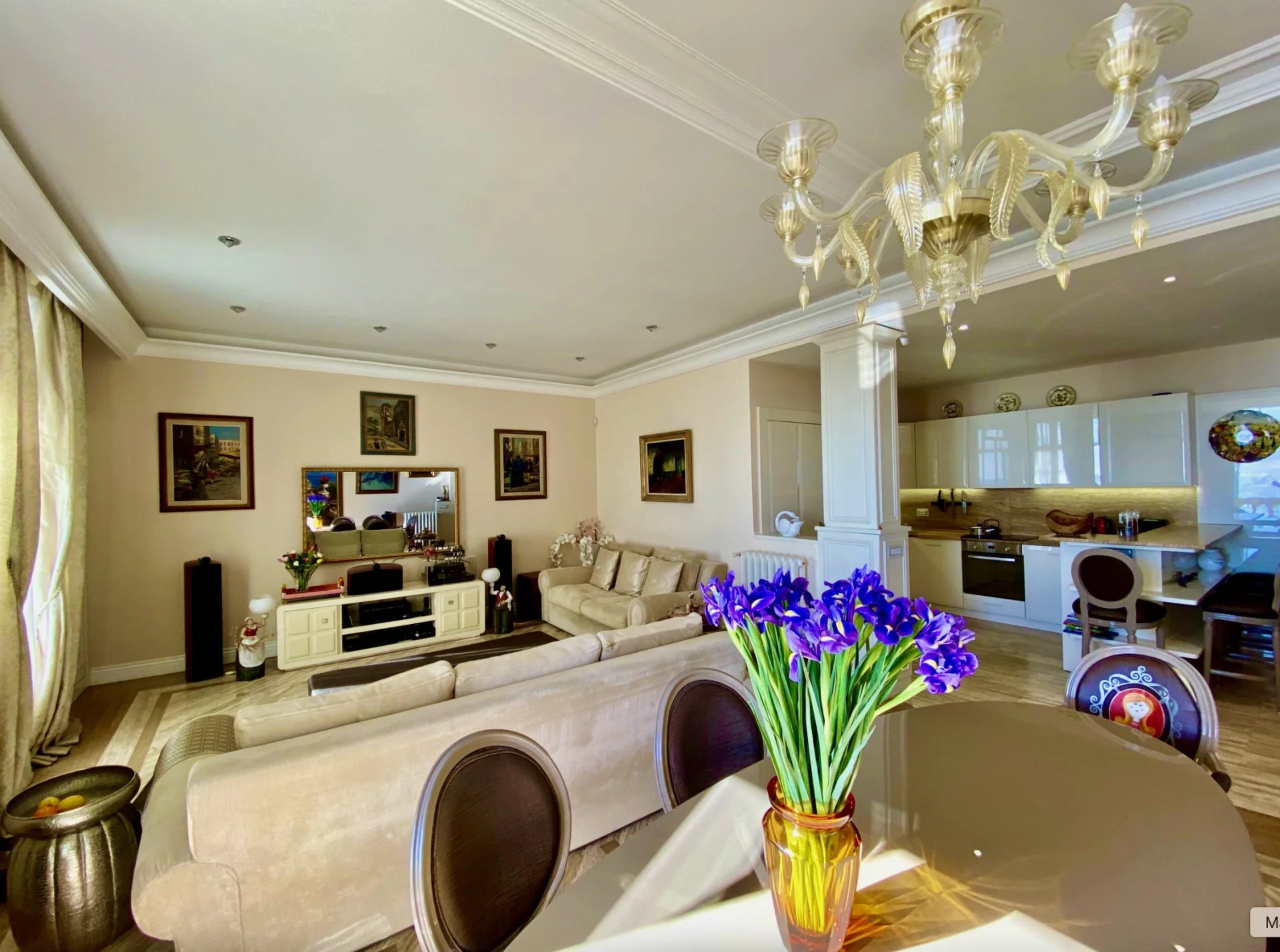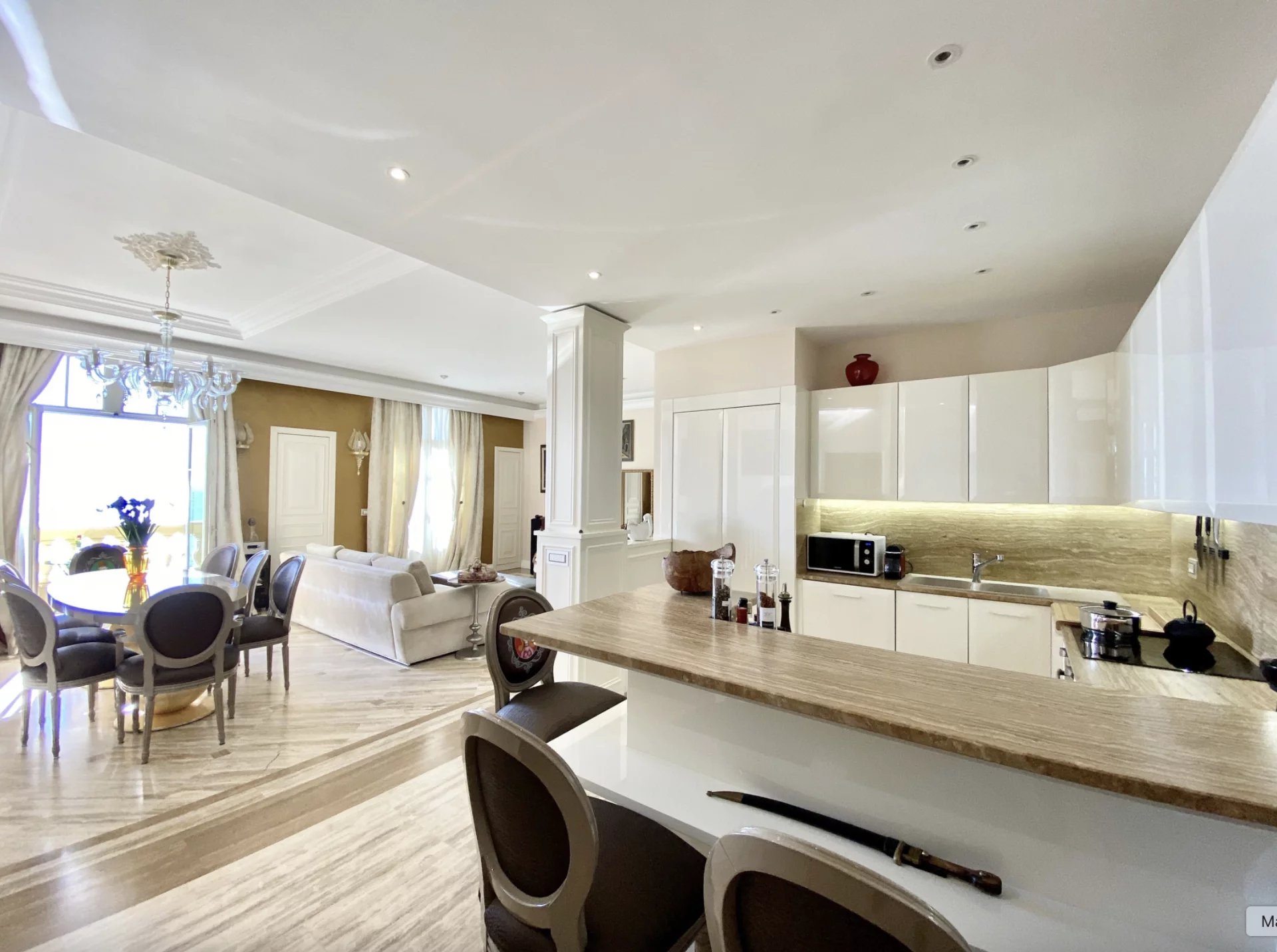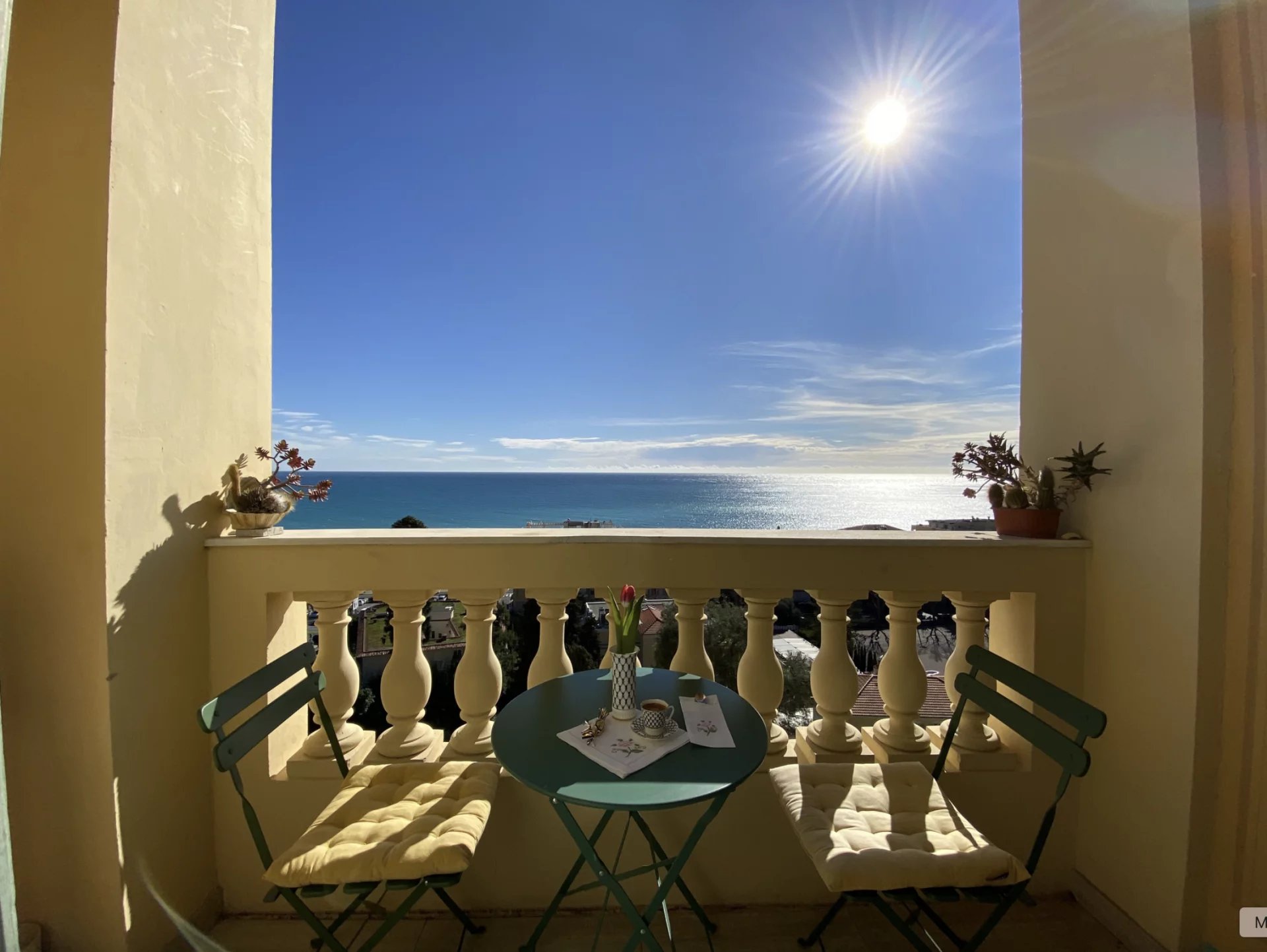 Located in a prestigious 18th-century building with park, on the 6th and top floor, this bright traversing apartment of approx. 140 m2 offers breathtaking panoramic views of the sea and the mountains.