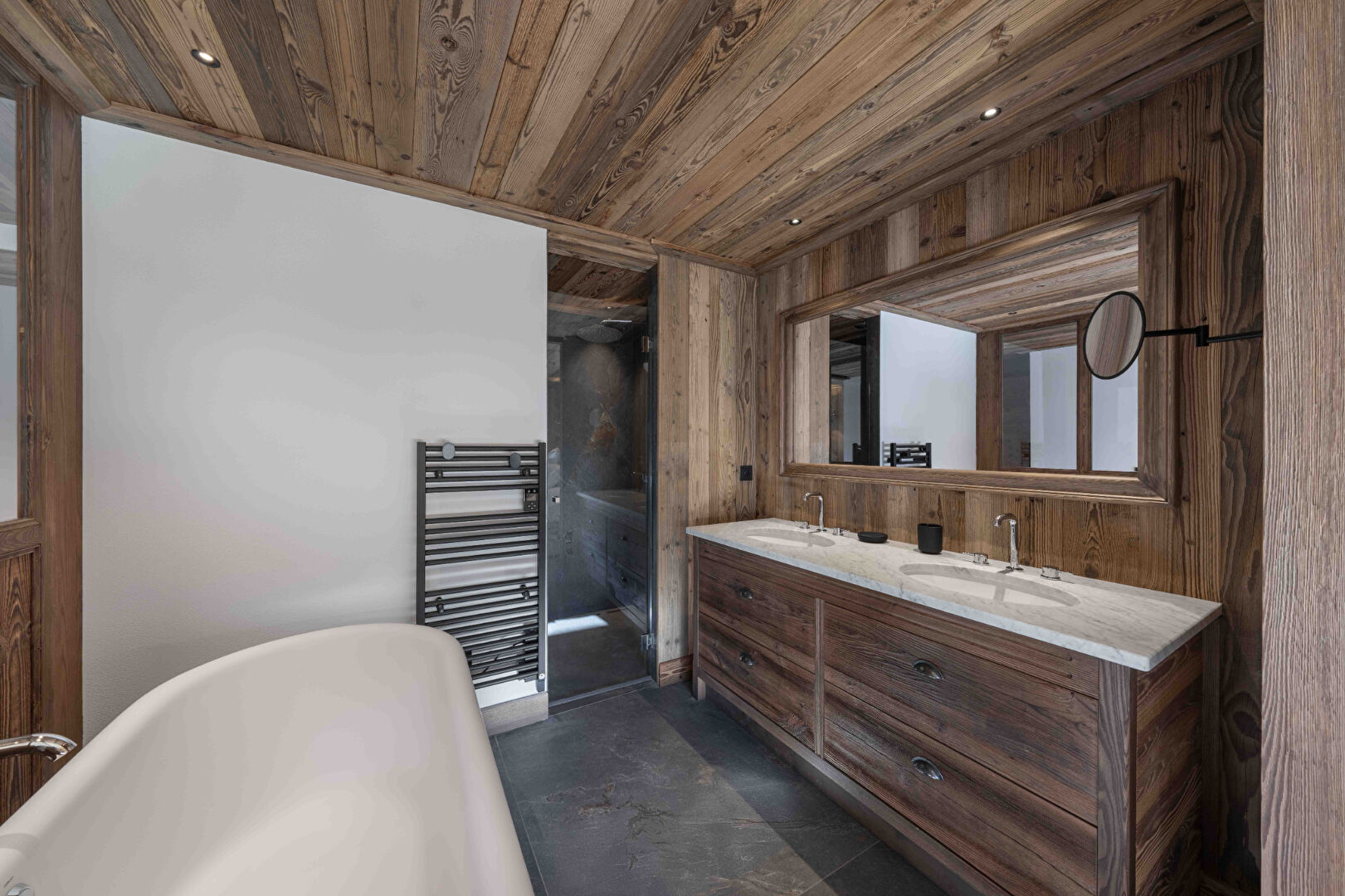 Located in a secluded and intimate area, discover Les Chalets Du Raffort, a superb opportunity in the heart of the 3 Vallées ski area. The development consists of five chalets, offering high-end amenities and unique materials. This chalet, with a living area of 323.01sq.m, blends in perfectly with the local architecture thanks to the use of old wood and local stone. Its south-west exposure and large windows provide generous light throughout the chalet, with views of La Saulire. Built on three levels, this property offers six en-suite bedrooms, a ski room and a wellness area with swimming pool and sauna. The magnificent living room with cathedral ceiling has a vast space of around 100sq.m and offers a cosy atmosphere with views of the surrounding nature. A summer kitchen is also provided for lunch on the large terrace and enjoying the tranquillity of the private garden. In addition, this property comes with 4 parking spaces. Possibility of VAT recovery and reduced notary fees. In addition, this property comes with 4 parking spaces. Possibility of VAT recovery and reduced notary fees.