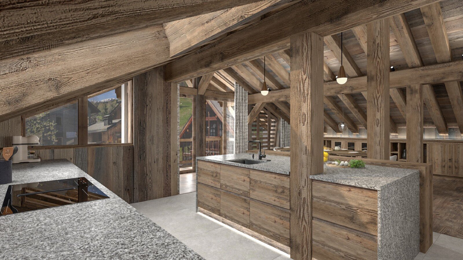 Located in a confidential and intimate area, come and discover Les Chalets Du Raffort, a superb opportunity in the heart of the 3 Valleys ski area. The program consists of 5 chalets, each offering top-of-the-range amenities and unique materials. The traditional mountain architecture, combining cut stone and old wood, blends perfectly into the popular hamlet of “Le Raffort”.