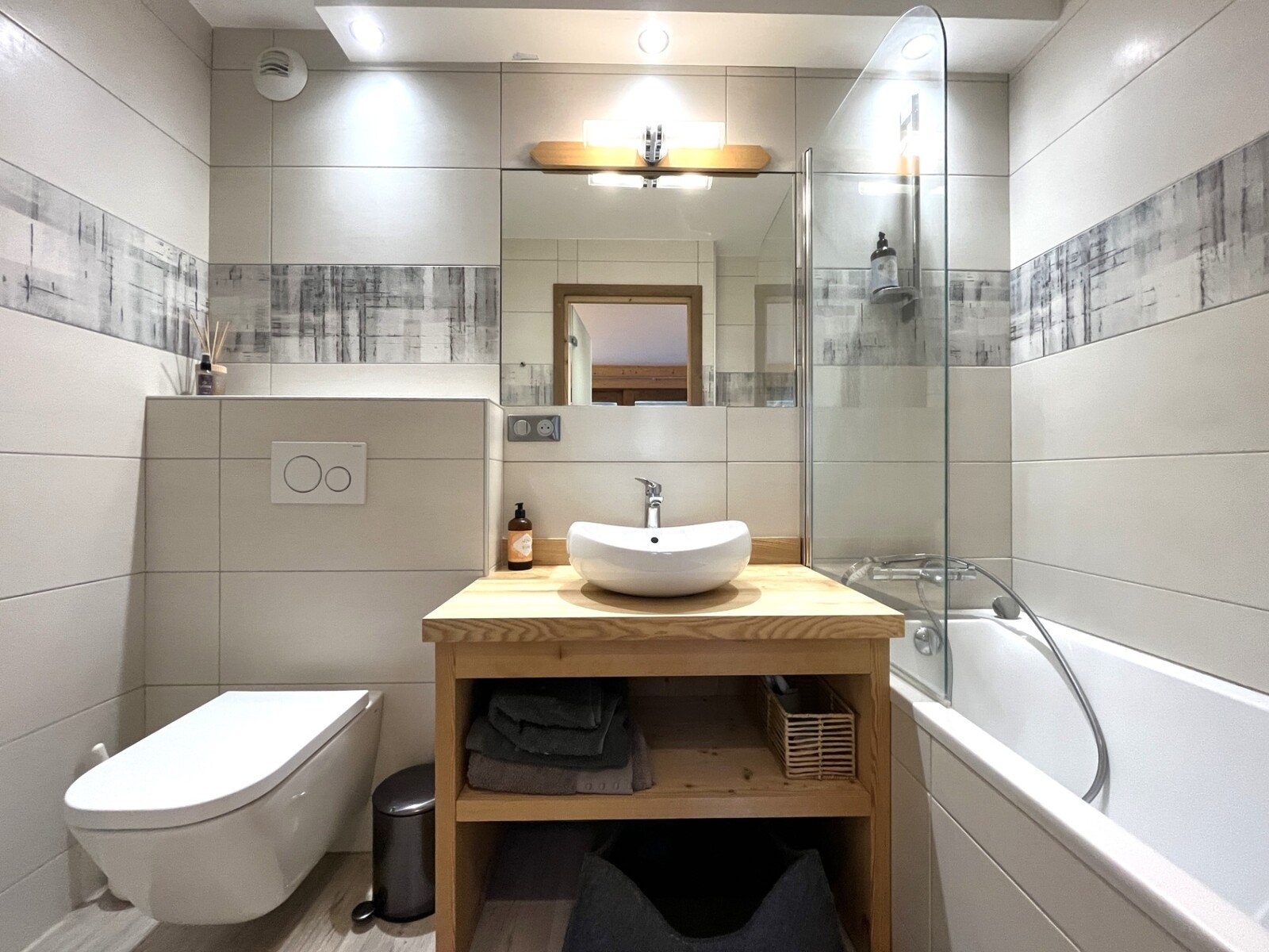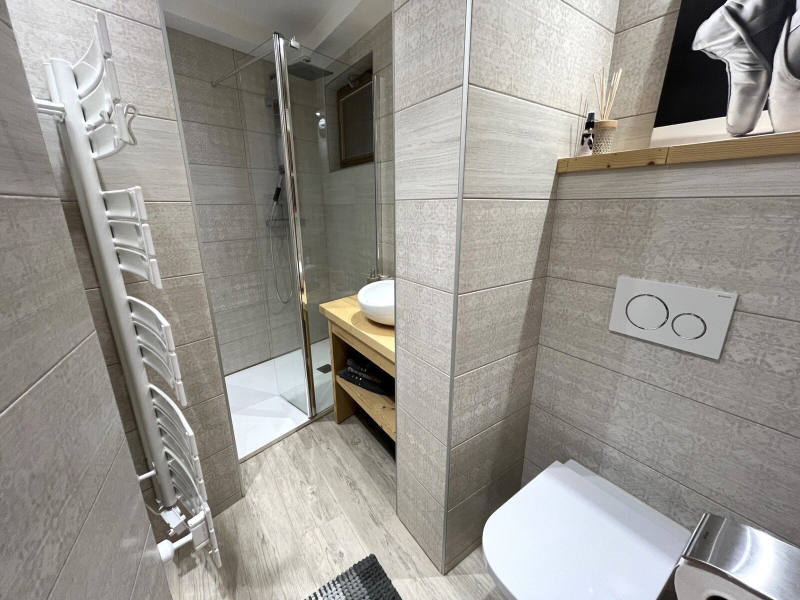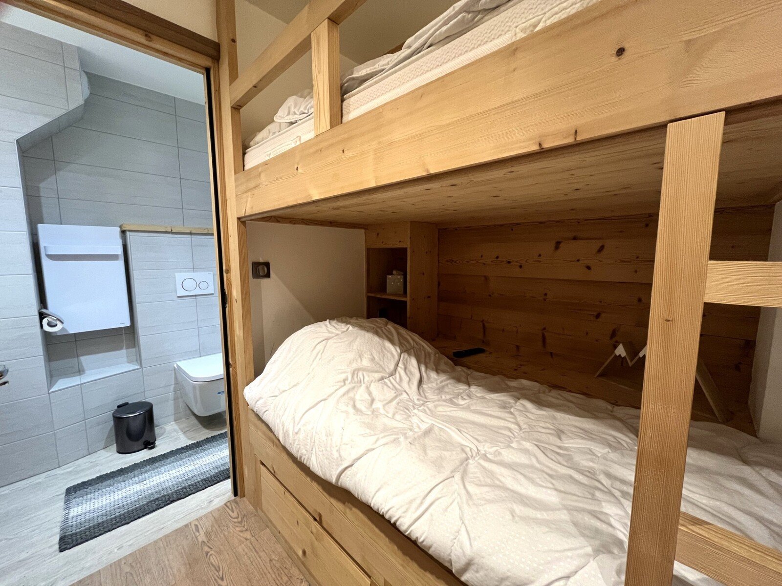 Discover this beautiful, tastefully renovated apartment of 67,45sq.m, located 250 metres from the ski slope and chairlift, and 800 metres from the centre of Méribel, with its shops and restaurants. The spacious living area features a lovely kitchen (with dining area) opening onto the lounge. The two balconies offer superb mountain views. As for the sleeping area, this apartment has two en suite double bedrooms with bathrooms, toilets and balconies, as well as a cabin bedroom with a shower room and toilets.
