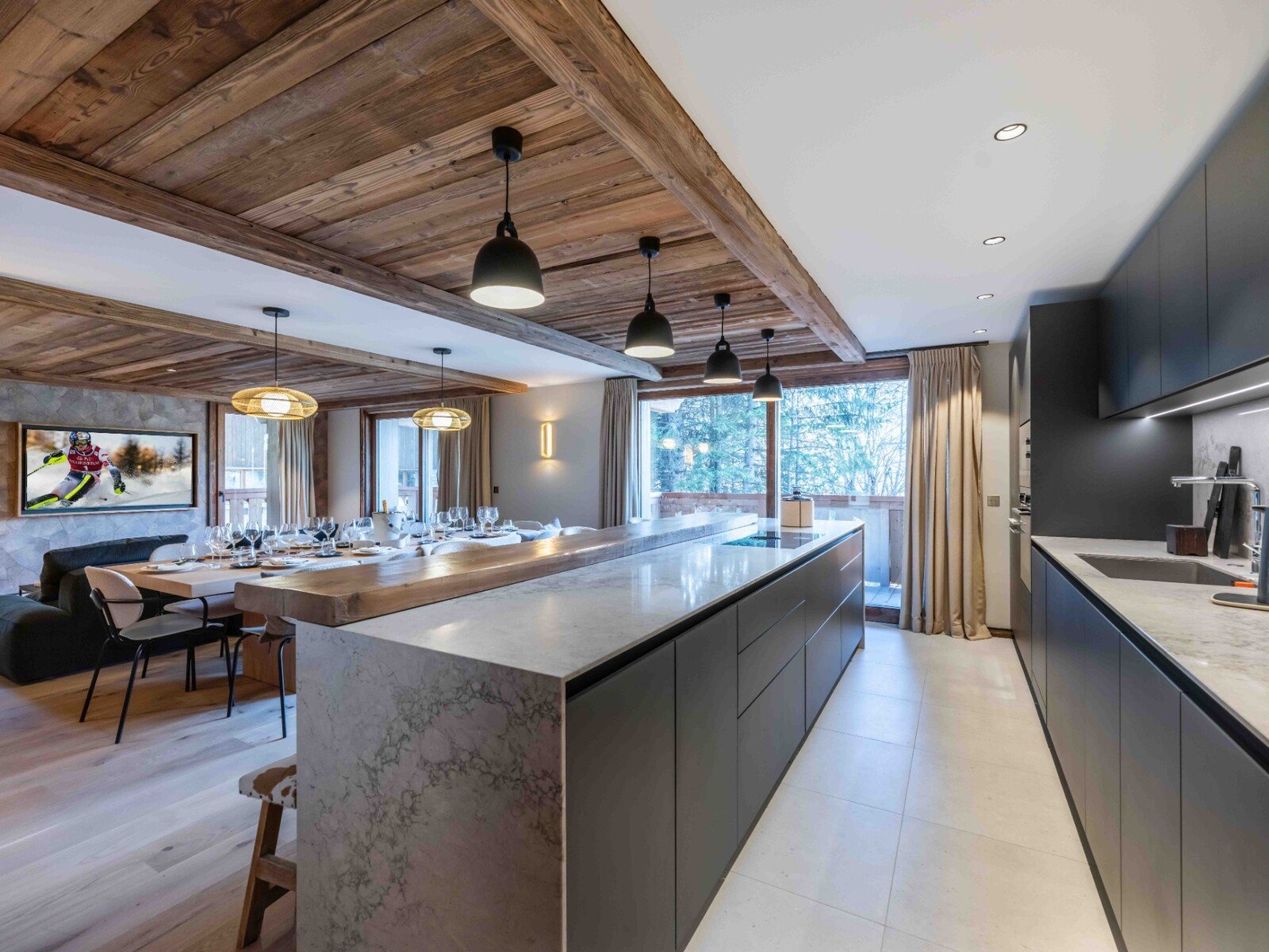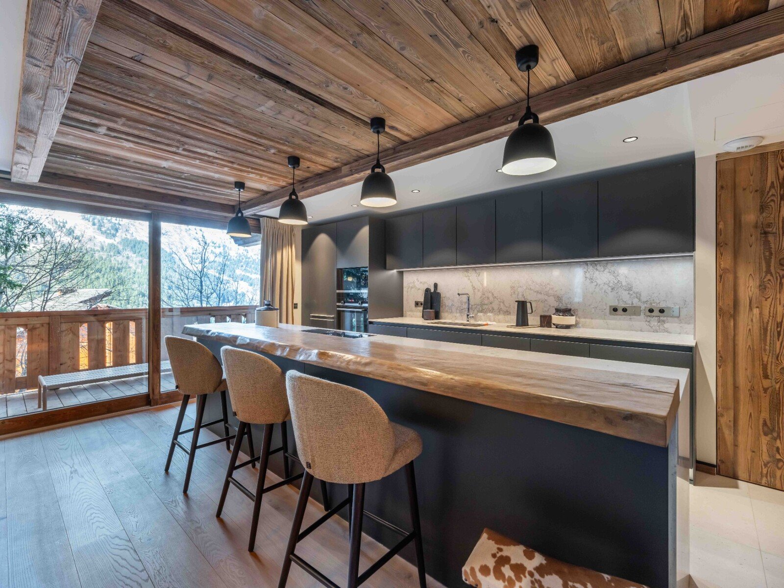 The apartments stand out for their exceptional quality materials, as well as their large picture windows and spacious balcony-terraces, which offer excellent sun exposure and stunning views of the surrounding mountains.