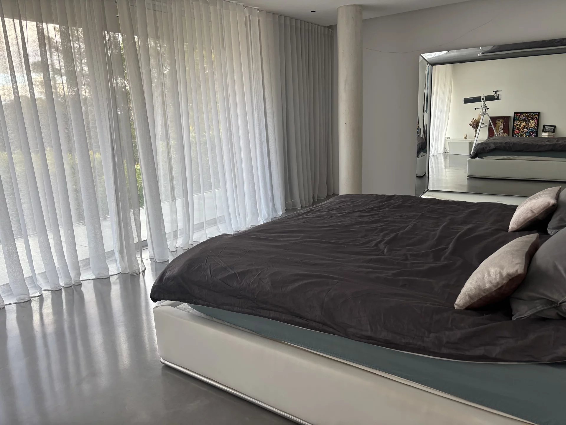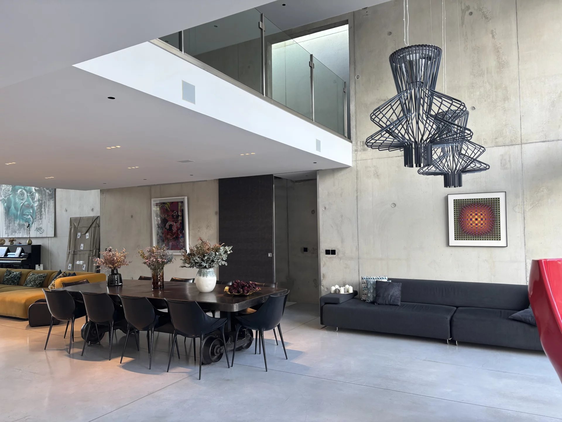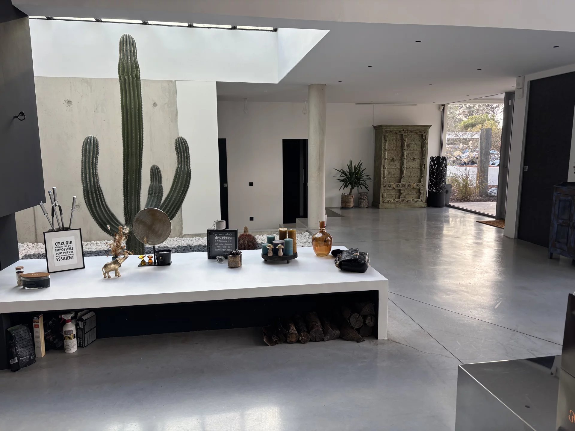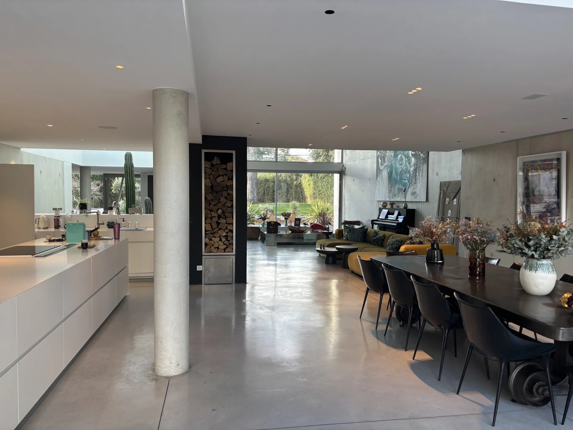 Designed with architectural purity and elegance in mind, the villa is spread over three generously proportioned floors. Each room enjoys remarkable natural light thanks to large windows and ideal orientation. The ground floor features a majestic living room with a fireplace, an open-plan kitchen and three junior suites.