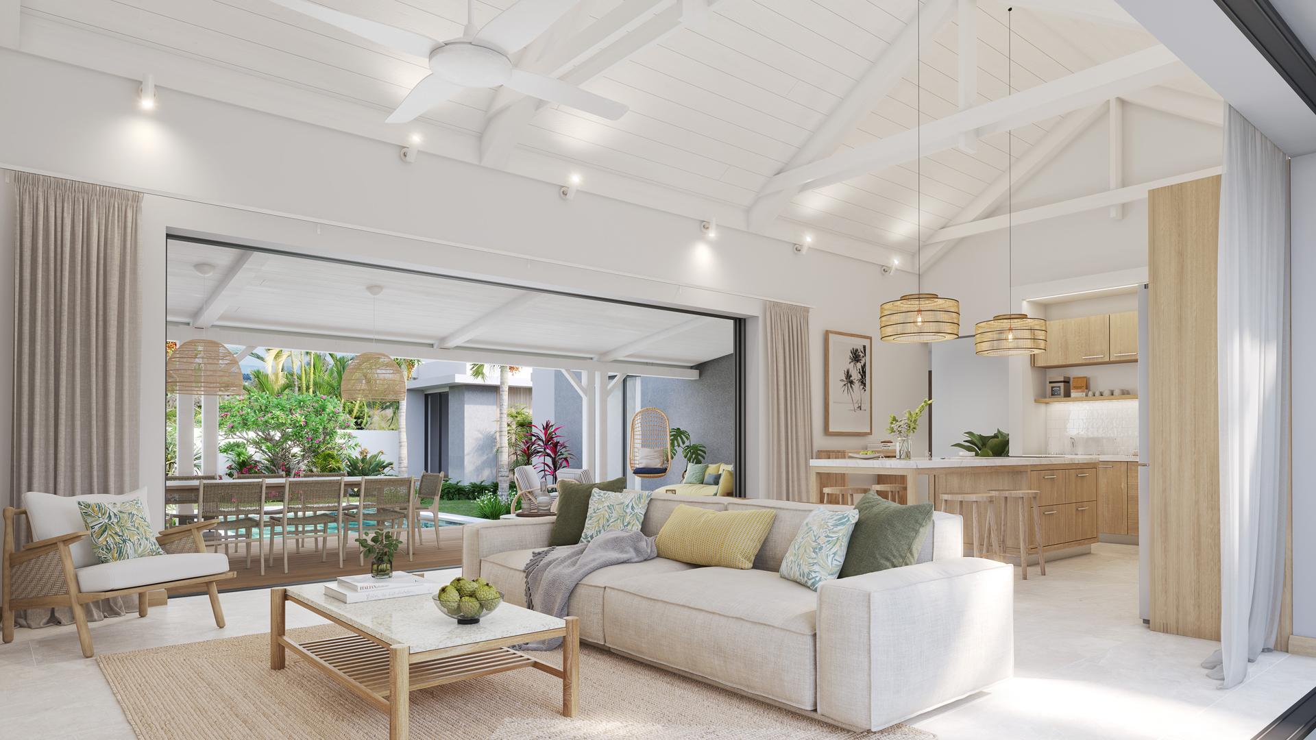 Tucked away in the most natural setting of the North, this charming 3-bedroom villa invites you to embrace a refreshing lifestyle in Mauritius. This thoughtfully designed home is nestled within a secure community.Inside, the villa offers a spacious, open-plan living area that seamlessly extends to the lush garden, where a large swimming pool awaits. High ceilings and a double-panel roof in the living area create an airy, light-filled ambiance. Each of the 3 bedrooms comes with its own en-suite bathroom, and for those seeking additional space, there is an option to add a 28 m² outbuilding in the garden, ideal for a fourth bedroom or guest suite.Residents here can enjoy beautifully landscaped common areas that capture the essence of Mauritian charm, along with enhanced security features, including a gated entrance, electric gate, and CCTV.Contact us to schedule a visit.