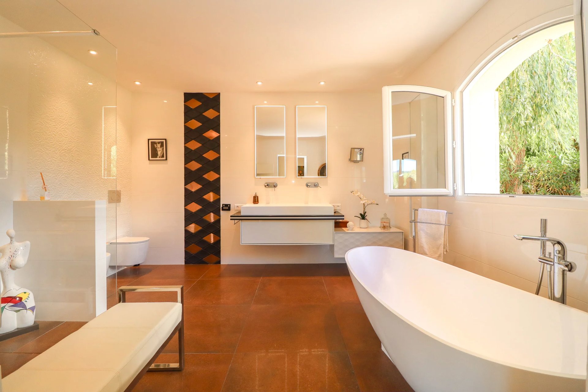 On the ground floor, you’ll enjoy a large bedroom with its own private bathroom and toilet, ideal for day-to-day living. The living room and beautiful open-plan kitchen open onto a superb covered terrace, perfect for meals with friends or summer naps. A cozy office area completes this level.