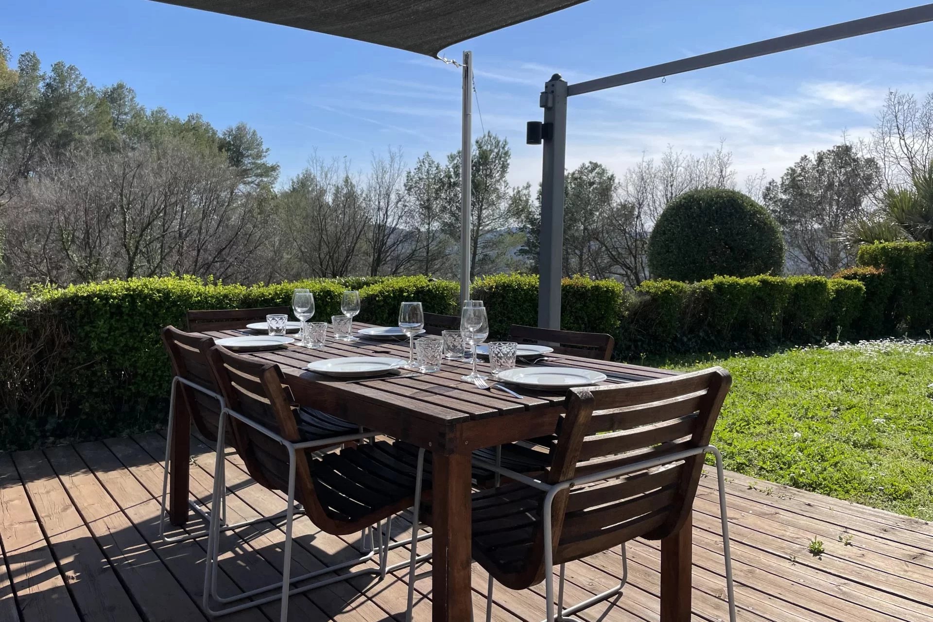 In a quiet area, a few steps from the village of Montauroux, discover this modern single-storey villa facing south on a land of 2000 m2, offering a nice view.