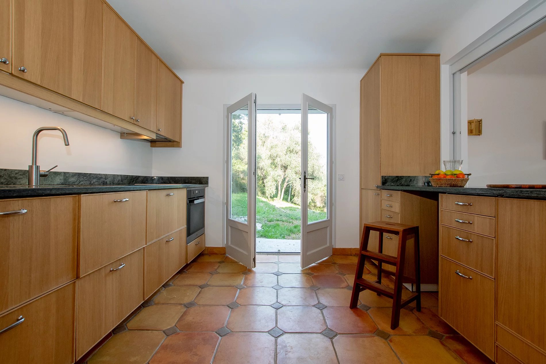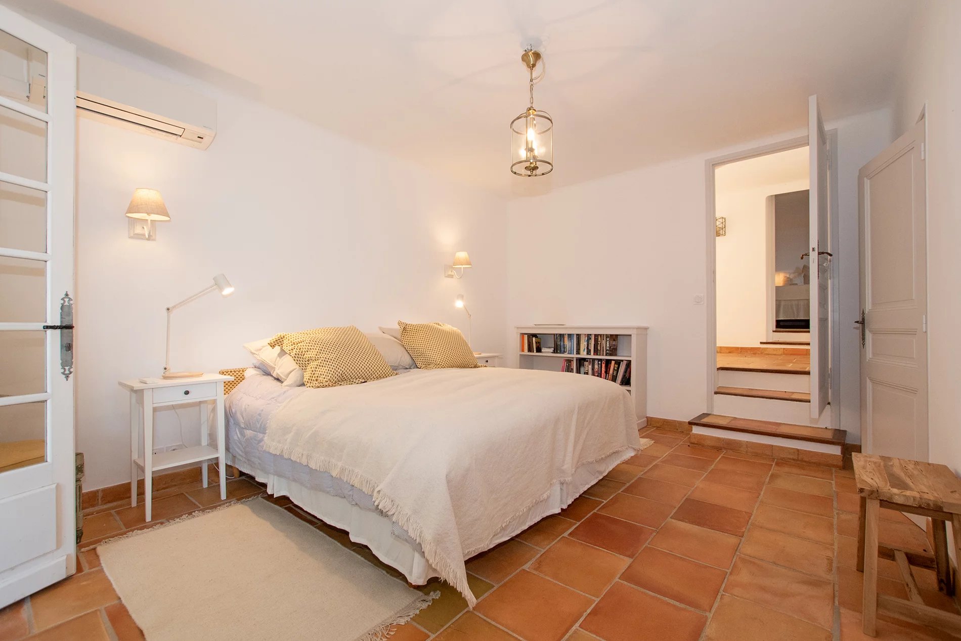 The garden level/lower level has a cosy TV snug with access onto garden and swimming pool and has a large storage room with a wine cave. This floor also includes two bedrooms with ensuite bathrooms and dressing rooms, each with access to a south-facing terrace, as well as an additional double bedroom.