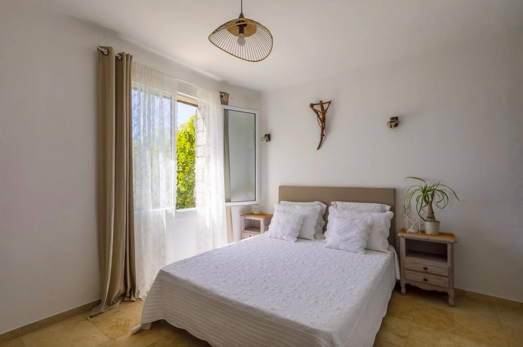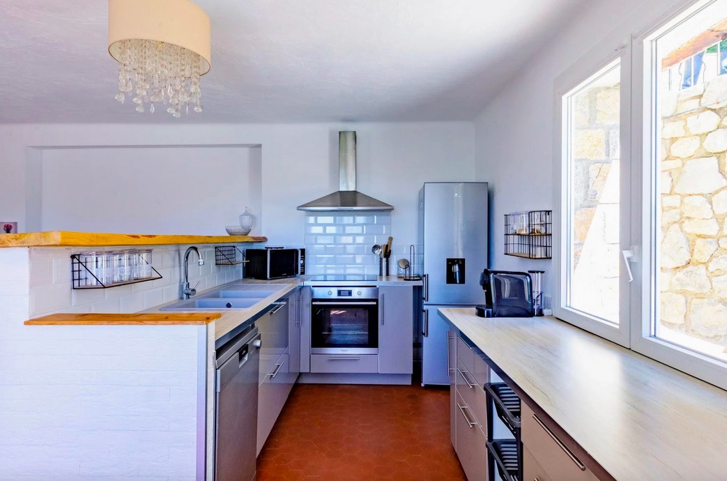 Situated on a 1040m2 plot of land, the terraced garden features olive, fig, cherry and orange trees, alongside a vegetable garden. Relax by the 3x2m pool, nestled above the main terrace, offering stunning sunset views. Additional amenities include a garage, further parking spaces and a charming stone outbuilding – perfect for an artist’s studio.