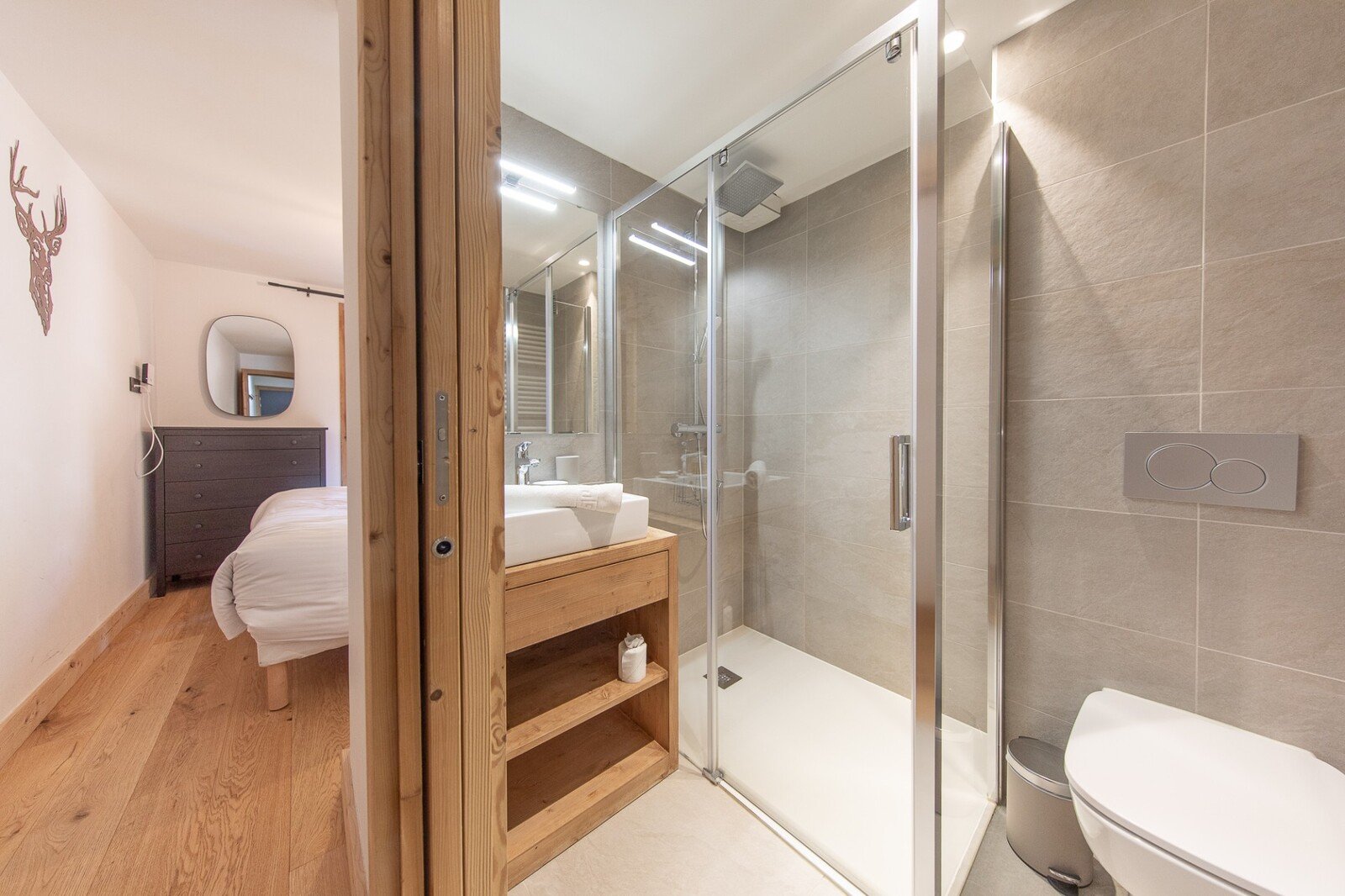 Spread over three levels, with a chalet feel, it comprises three bedrooms with private shower rooms. The fully-equipped kitchen opens onto a living room with large bay windows giving access to a terrace with uninterrupted views.