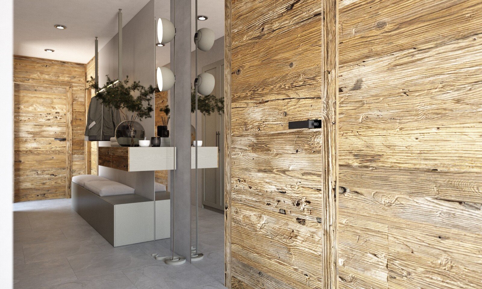The property is designed for the comfort and utility of 12 people, laid out over 4 levels; a ground floor with a spacious entrance hall equipped with built in cupboards for outdoor clothing, a ski/boot and bike room, and a garage with space for 4 cars.