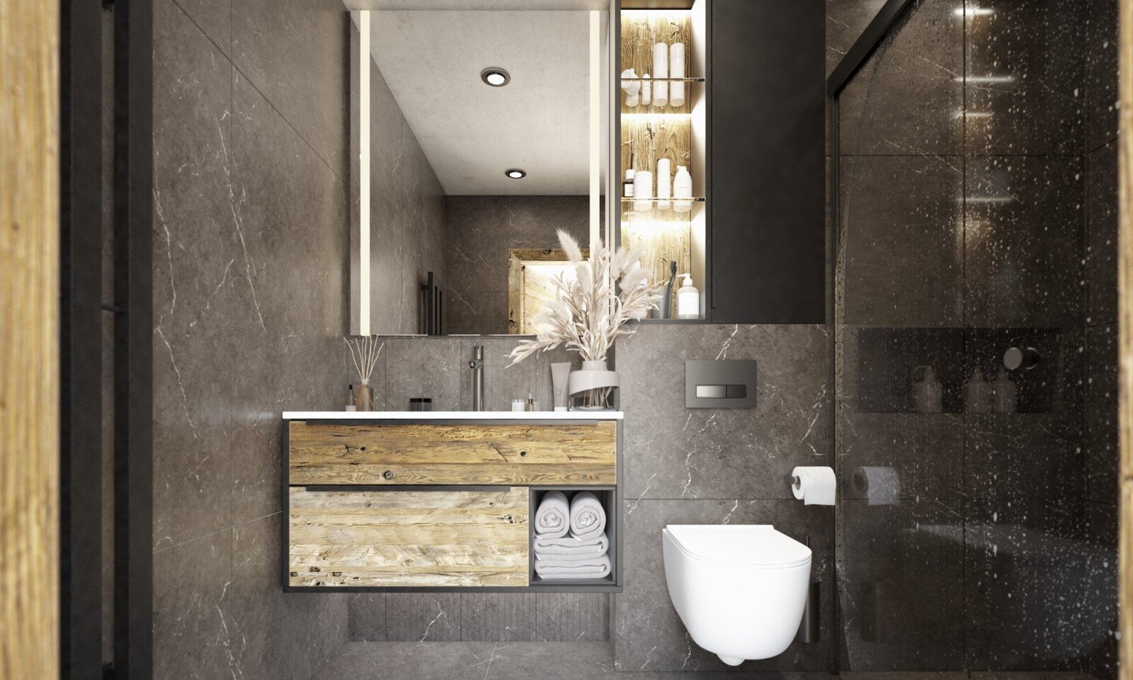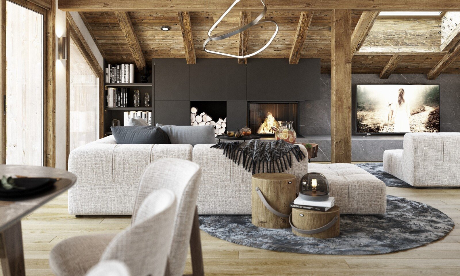 The first floor will house 2 double bedrooms with en-suites, both with private balconies from which to appreciate the outstanding views, then a bedroom with 4 bunks and a bathroom. Also on this floor, a relaxation area with a sauna to wind down after skiing, biking or hiking.