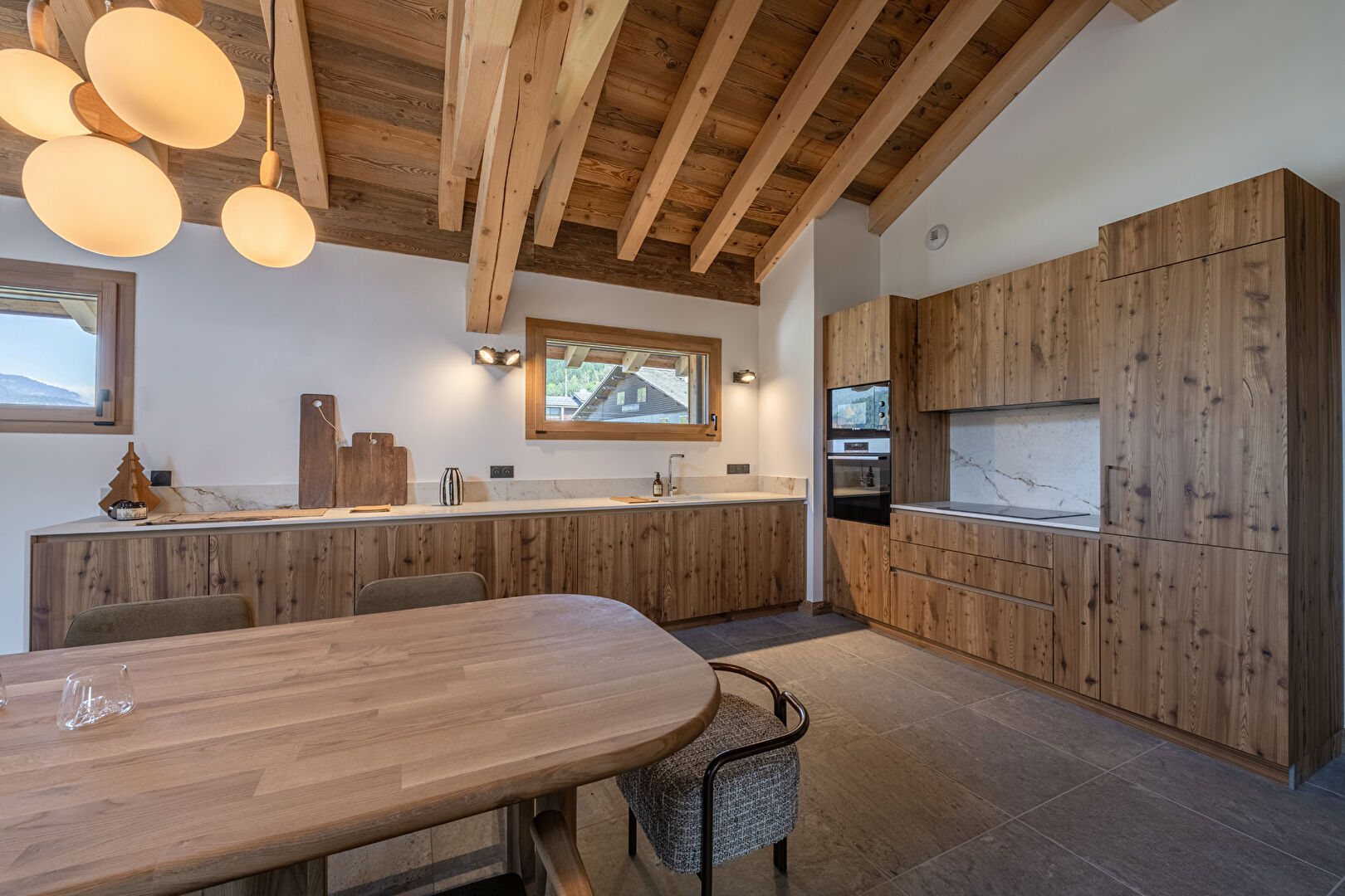 We are pleased to offer for sale this new chalet, built in 2024, delivered turnkey and fully furnished with a contemporary design. This magnificent 205 m² chalet features a beautiful entrance hall, 4 en suite double bedrooms with fitted closets, 3 of which have balcony-terrace access, and a dormitory with 2 bunk beds and bathroom. The fully-equipped kitchen opens onto the living room, with direct access to a lovely terrace. The chalet also has a laundry room and a spacious ski room, as well as 2 rooms that you can arrange as you wish. The chalet includes 4 underground parking spaces and one outdoor parking space.