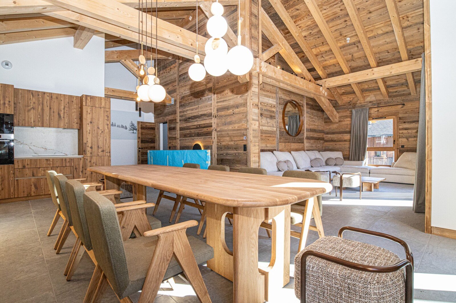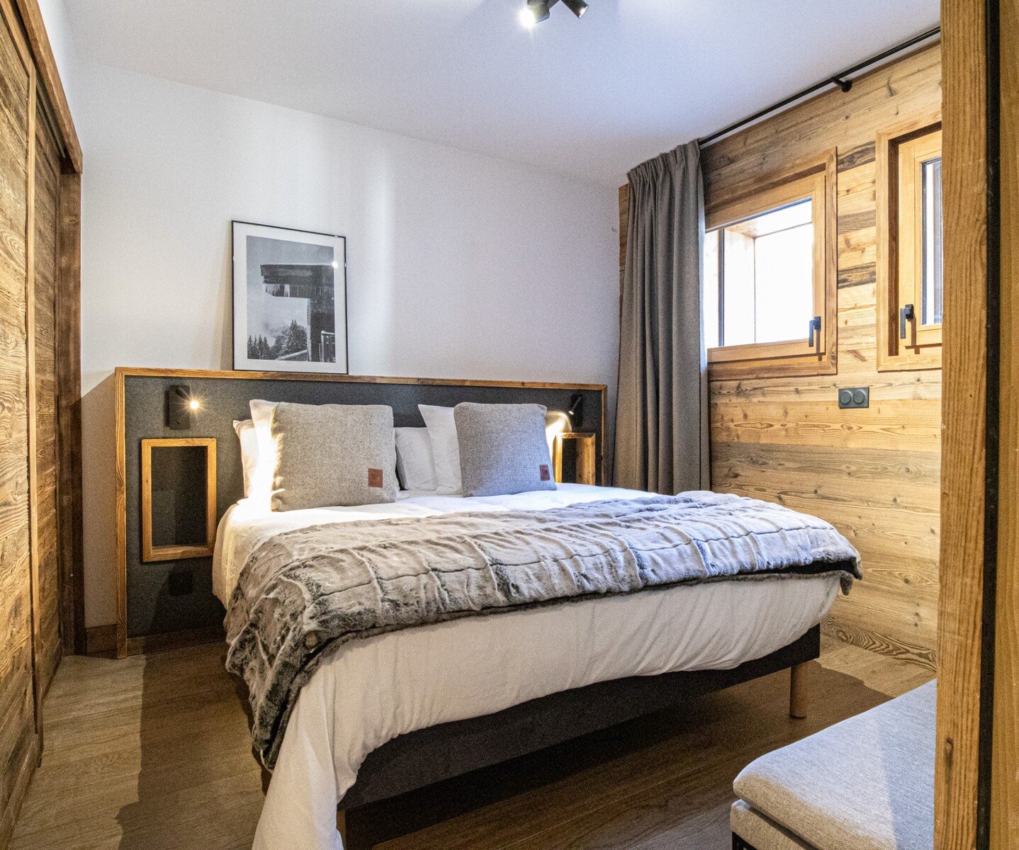 This magnificent 205 m² chalet features a beautiful entrance hall, 4 en suite double bedrooms with fitted closets, 3 of which have balcony/terrace access, and a dormitory with 2 bunk beds and bathroom.