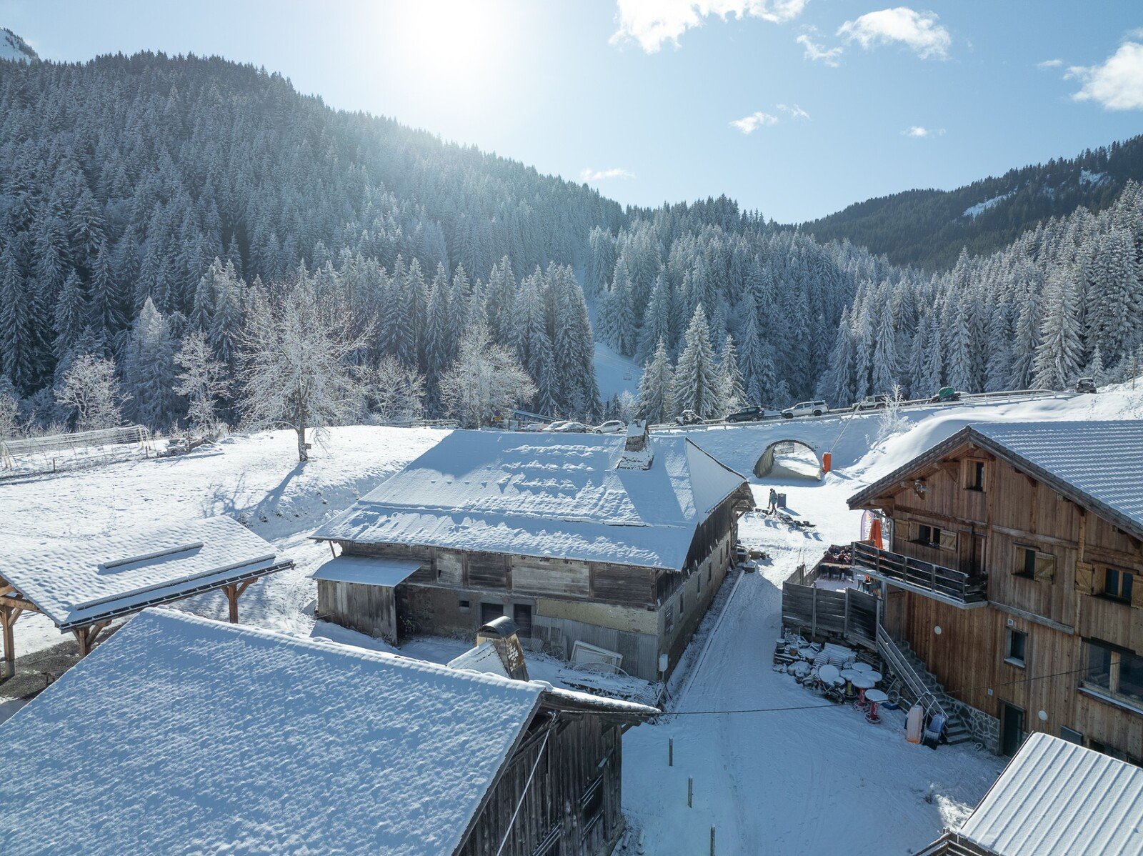 A very unique opportunity to undertake a project to convert a large traditional Savoyard barn, in its original state, situated on the ski slopes and next to the ski lifts to the Nyon and to the Pleney mountains from the Fys area of Morzine.