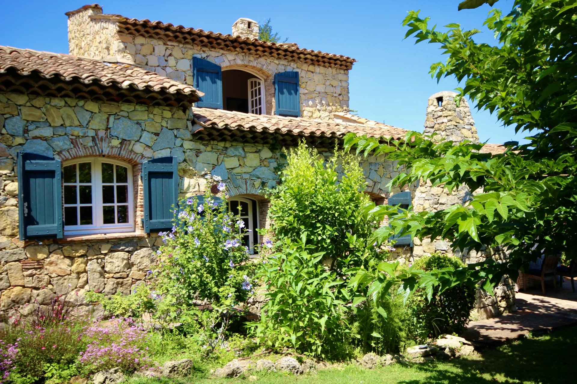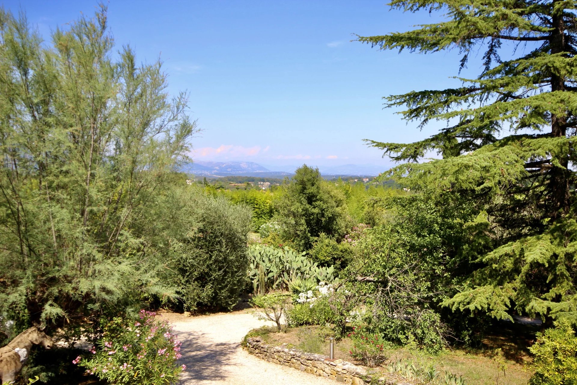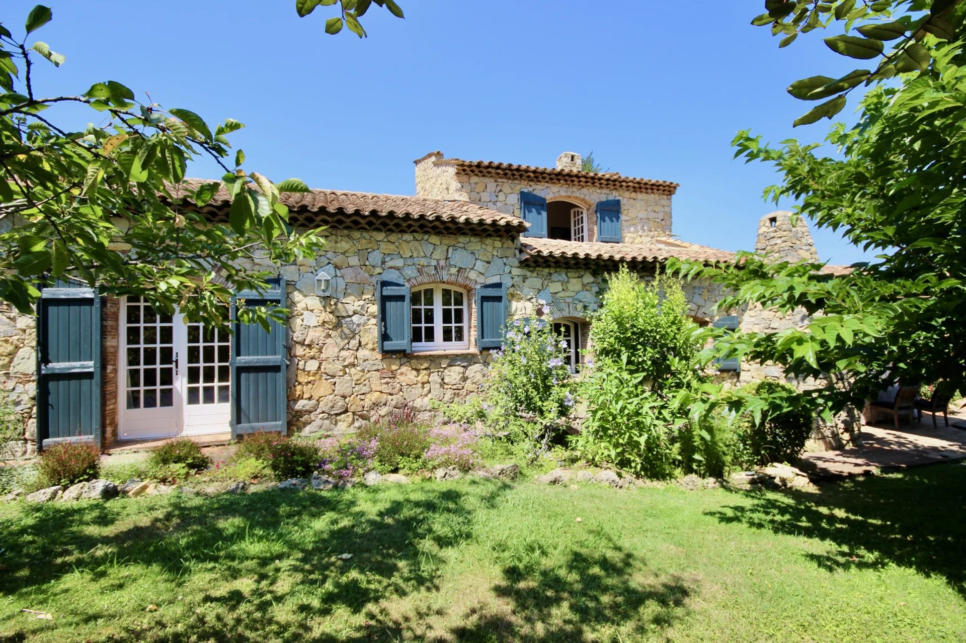 Ideally located between Mougins and Valbonne, this charming stone property of approximately 190m2 nestles in the heart of a plot of more than 4,000 m2 planted with Mediterranean species, including noble olive trees with silver foliage.