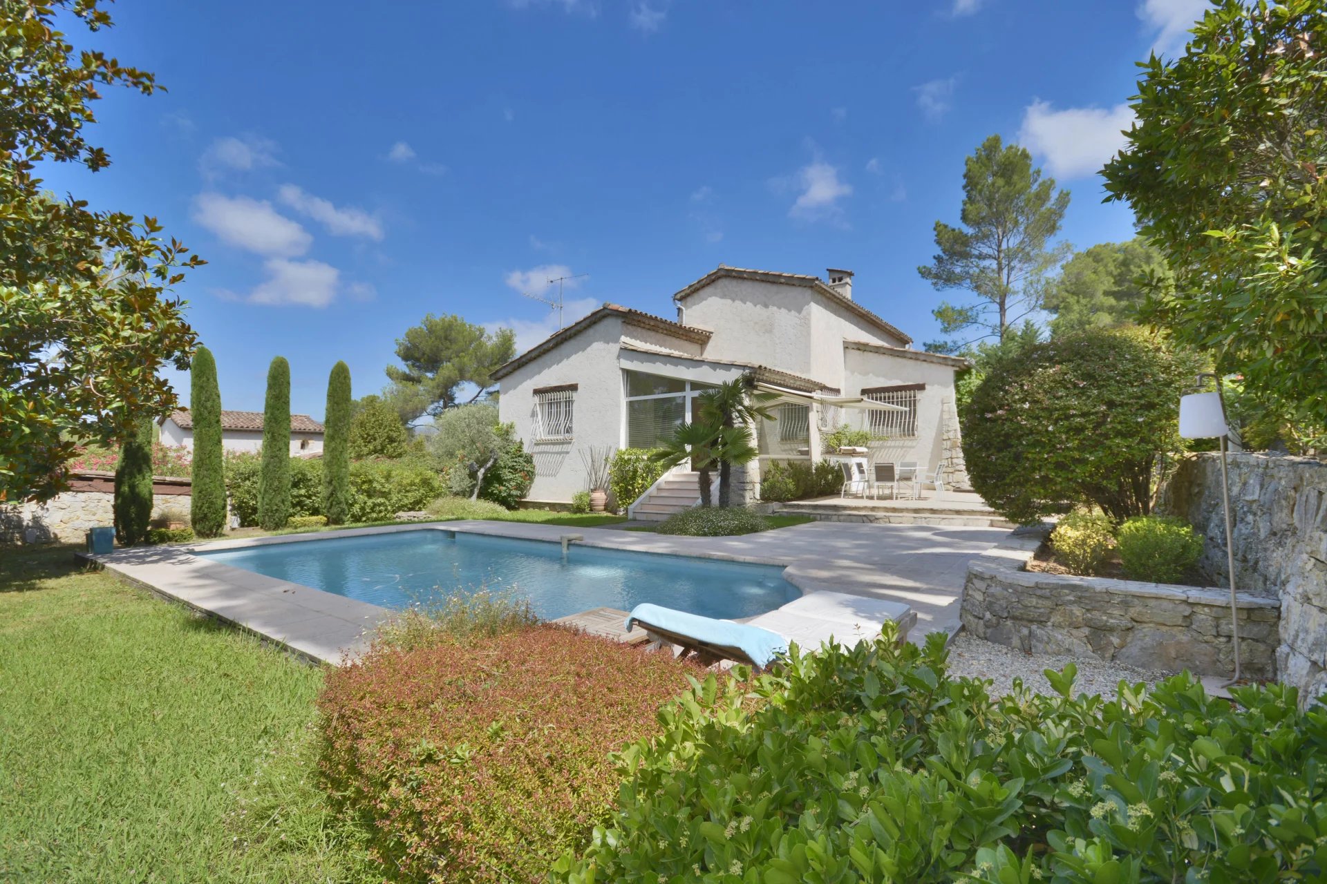 Mouans-Sartoux : situated in a quiet residential neighborhood, within walking distance to the center, beautiful renovated Provencal-style villa with an open view.