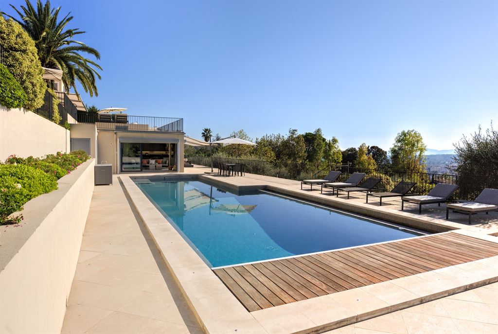Offering breathtaking panoramic views, this property is a true haven of peace, yet only minutes away from the most sought-after destinations on the French Riviera.