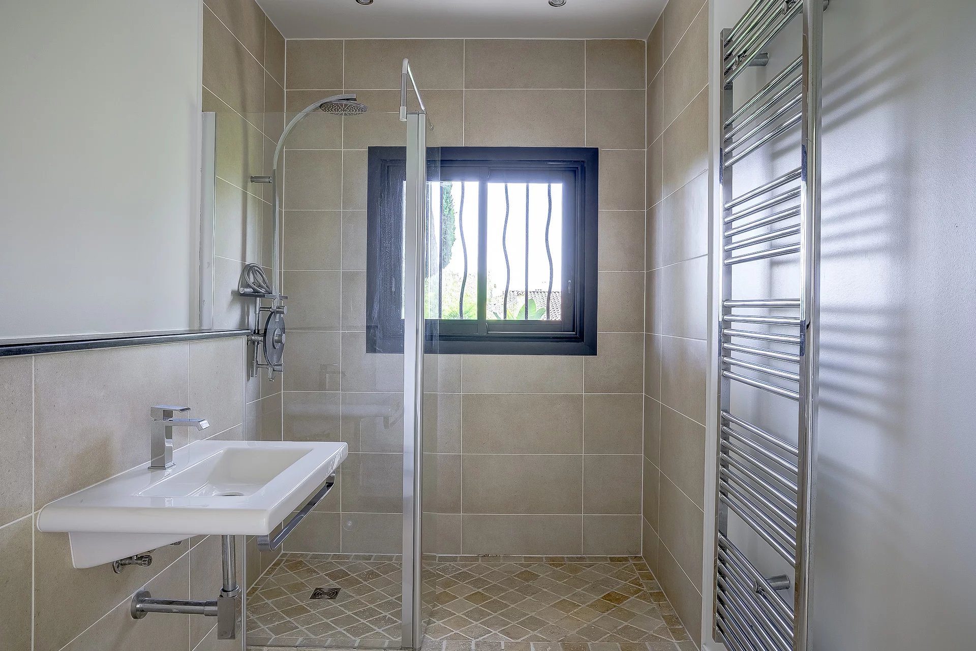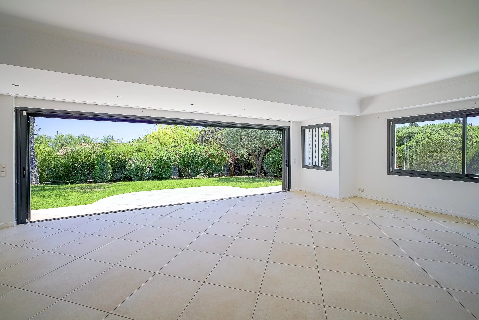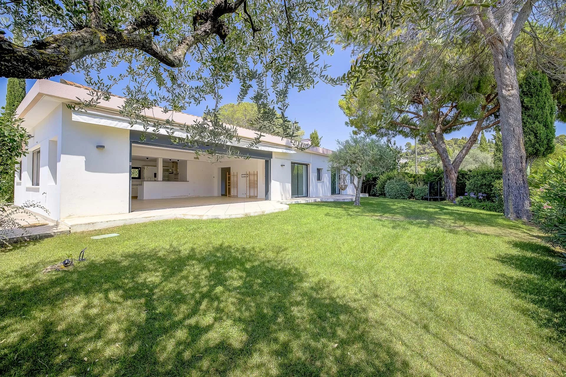 Large and bright single storey villa in the residential area of Mougins, quiet, with easy access and close to all amenities, golf course and International school.