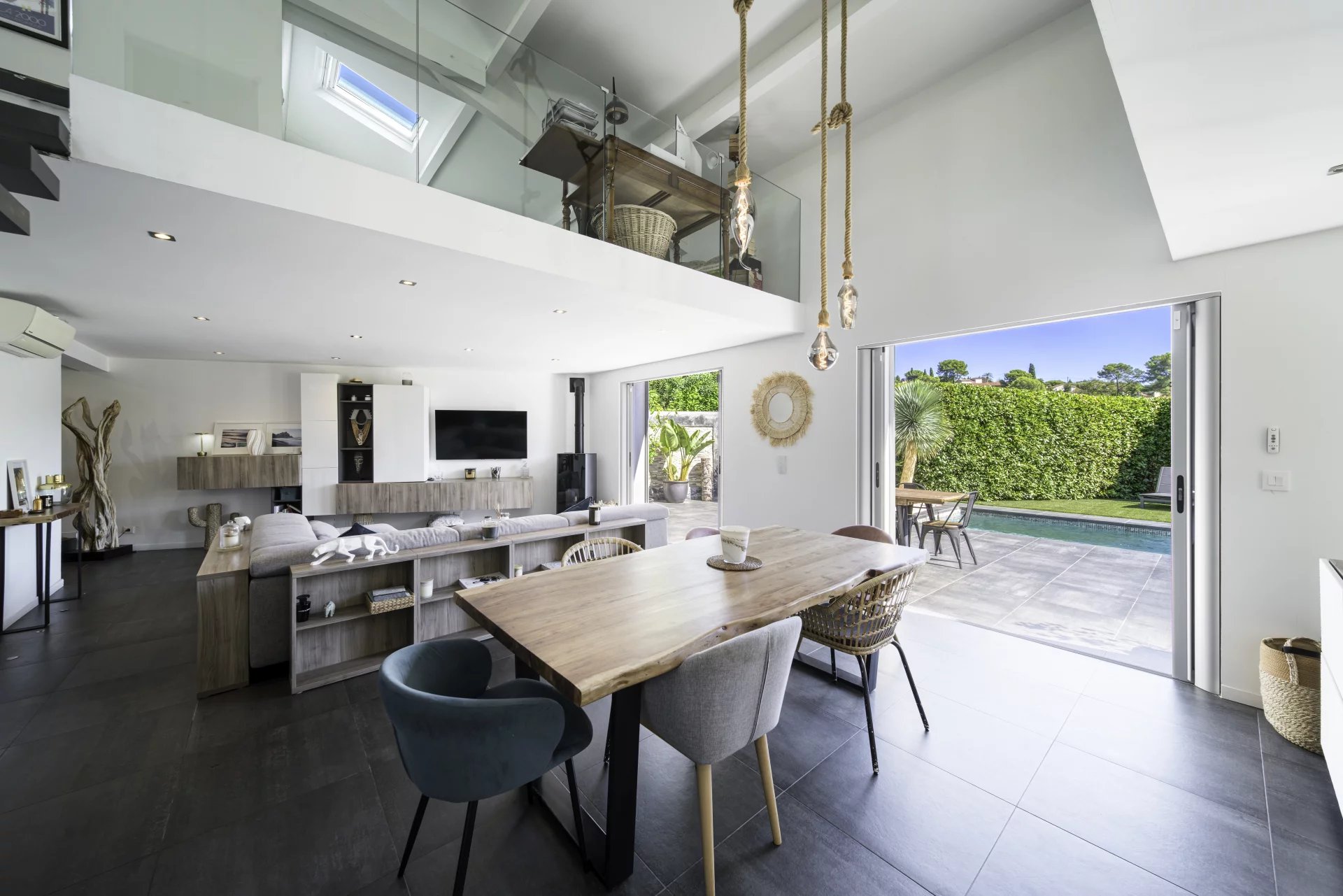 Perfectly located in one of the most sought-after residential areas of Mougins, this elegant modern villa of 160 m2 combines comfort, functionality, and contemporary style. Nestled in a serene and preserved environment while remaining close to amenities, it is ideal as both a family residence and a prestige pied-a-terre.