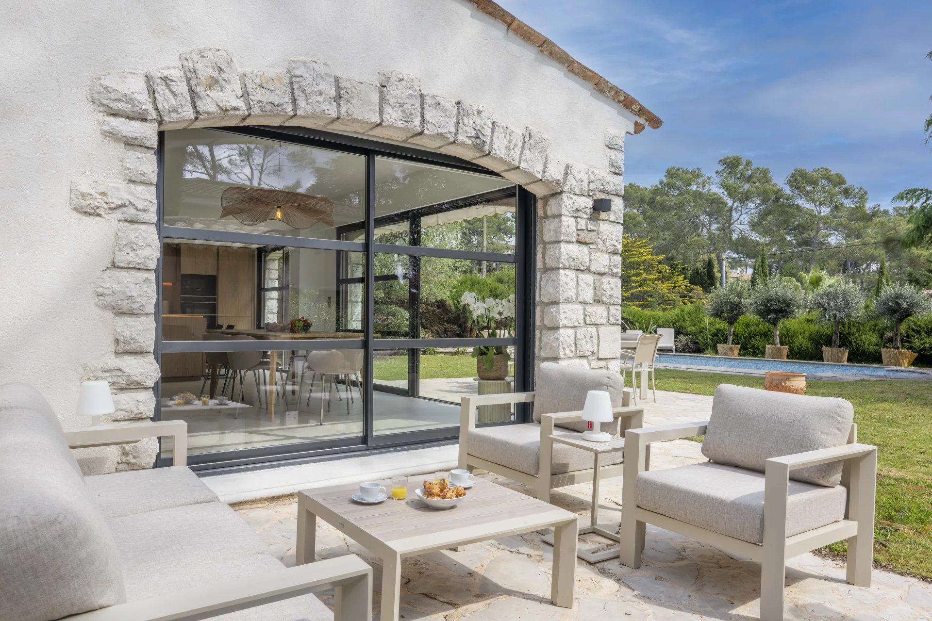 Entirely renovated, it features a beautiful, bright living space, a top-of-the-range, fully-equipped open-plan kitchen opening onto the terrace and pool, and a master suite with large dressing room, laundry room and guest toilet.