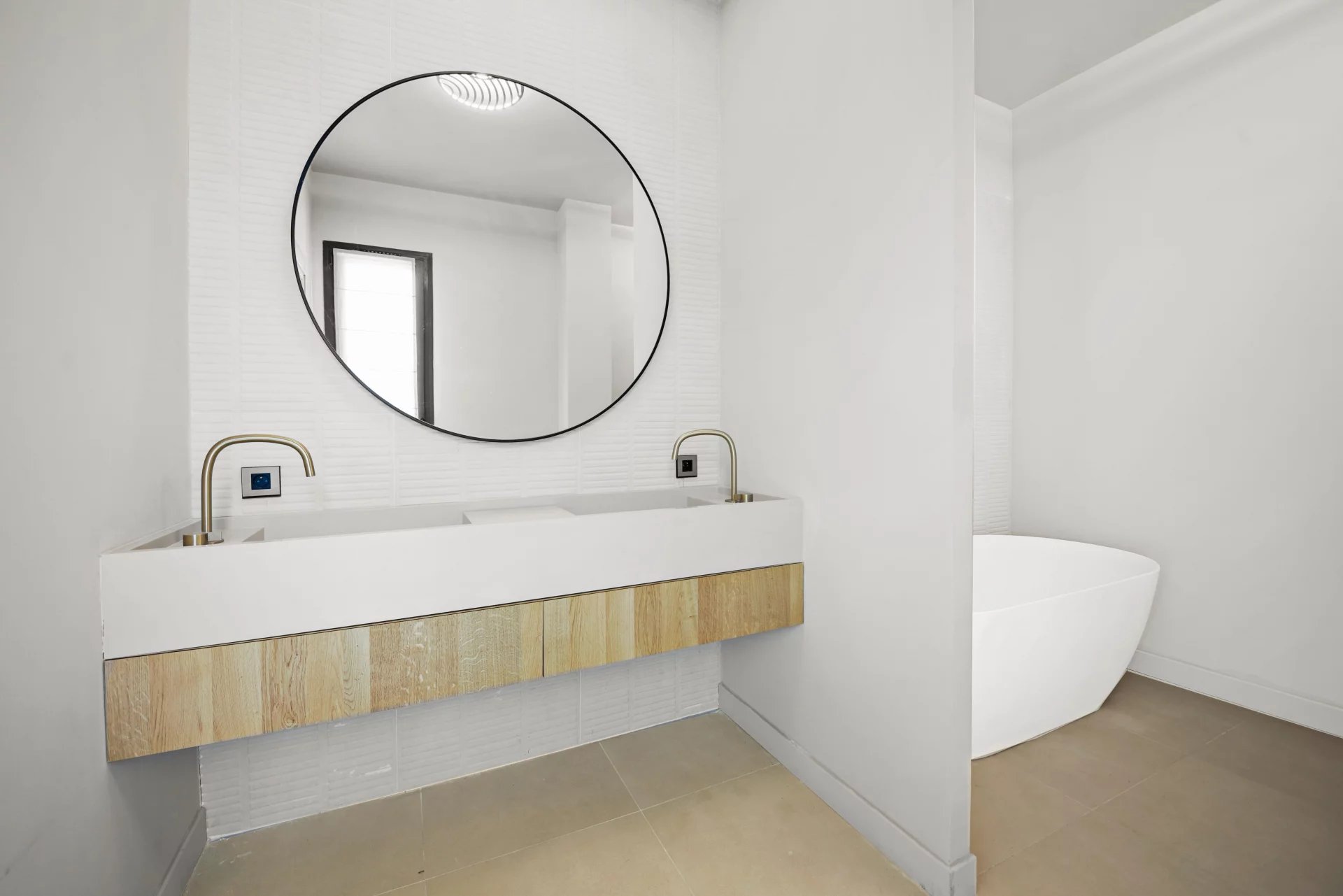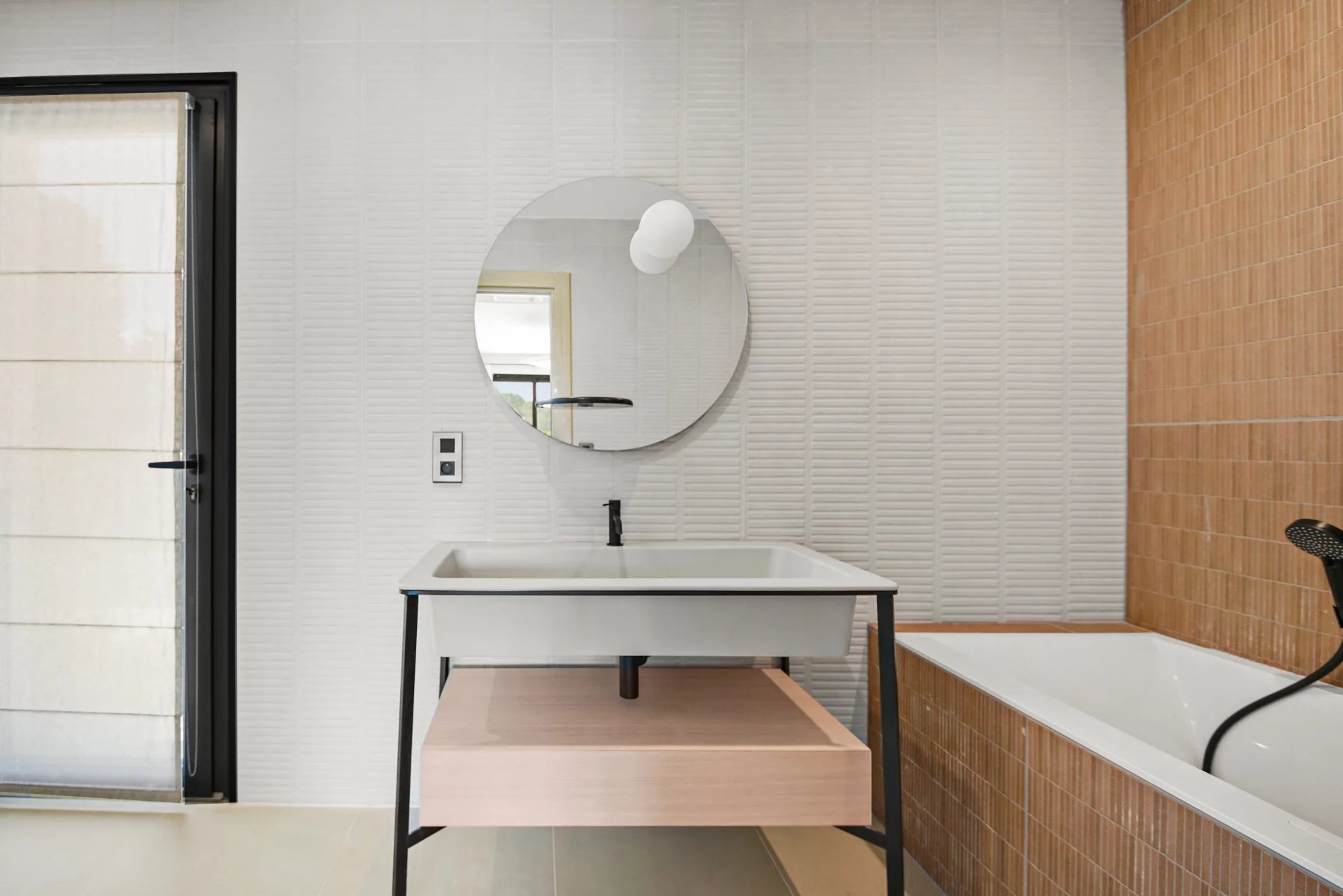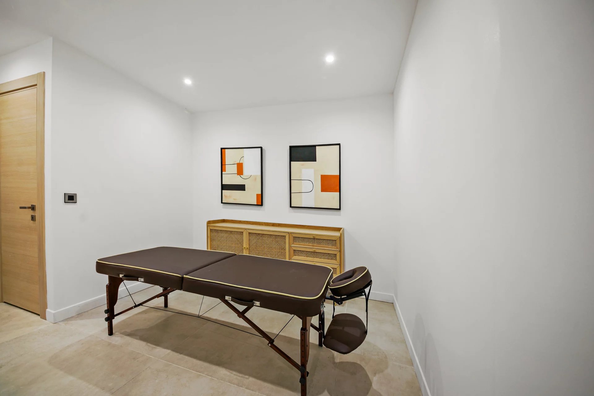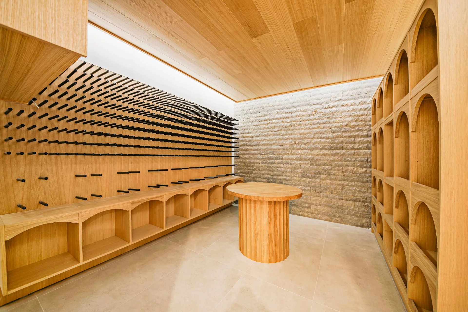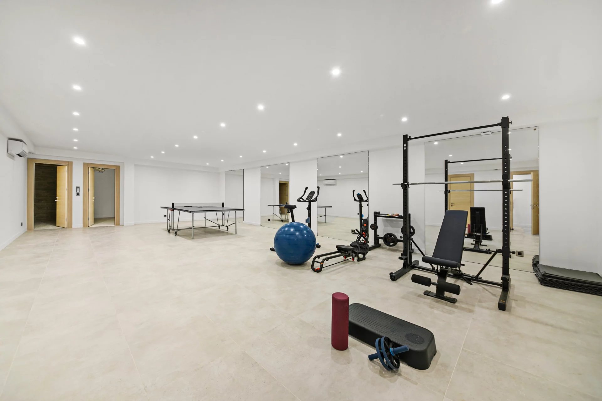 The basement houses a gym, a fully equipped wine cellar, a cinema room and a sauna, creating a space dedicated to relaxation and leisure.