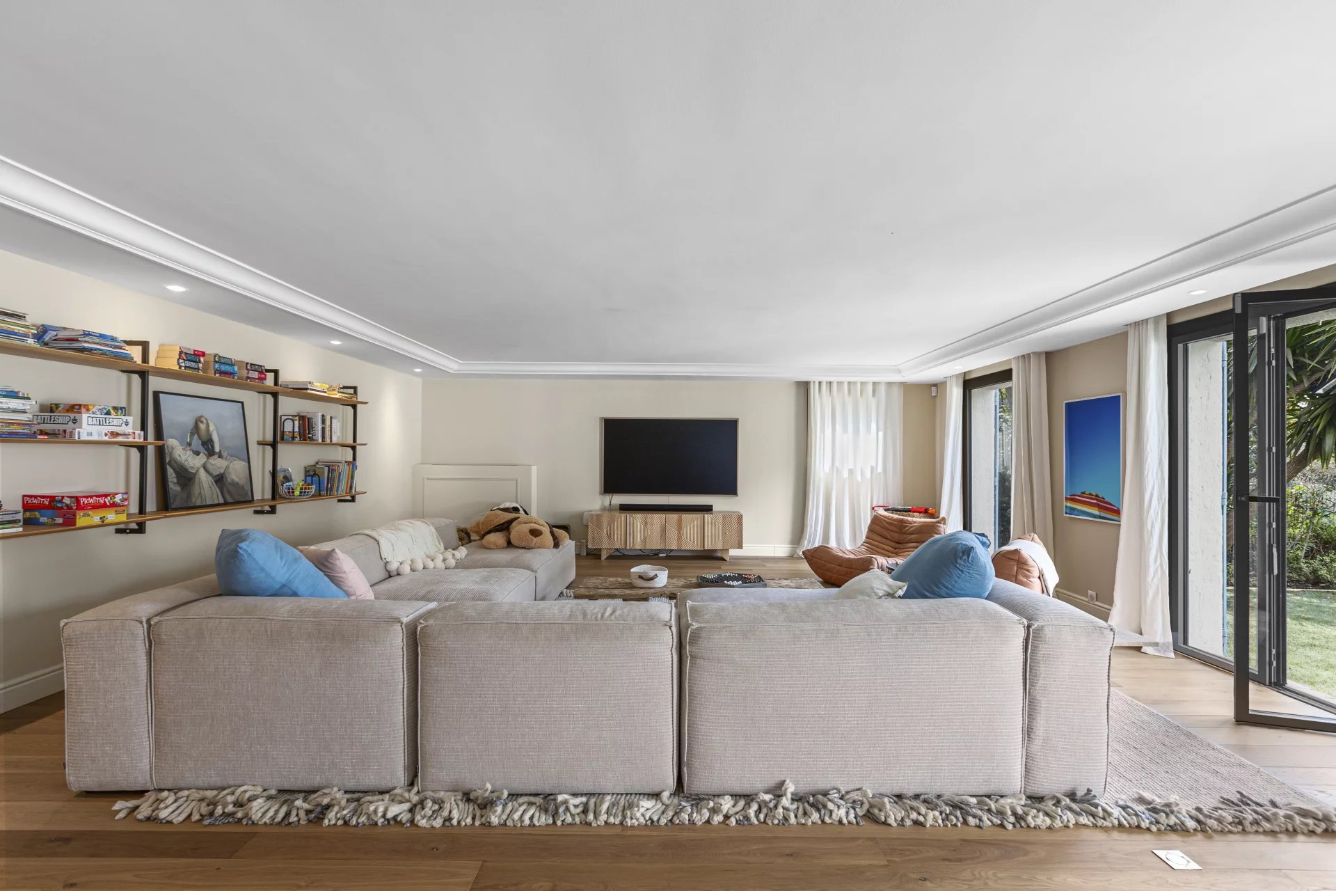 An immense cinema room provides additional entertaining space and access to the garden and pool.