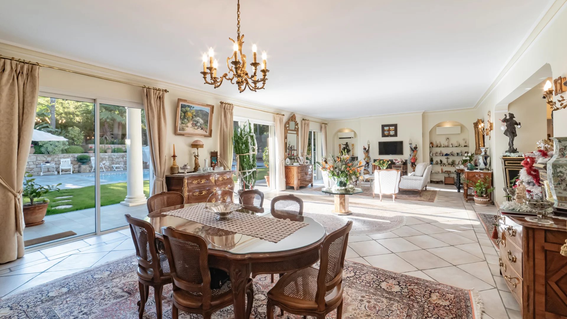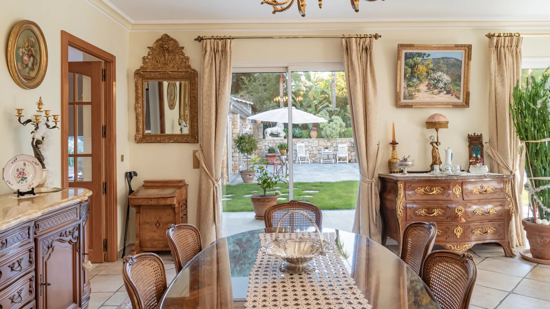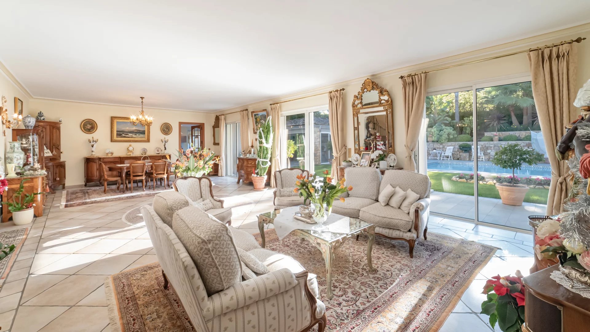 Located in the heart of Mougins, in a sought-after gated estate, this elegant 265 m2 villa stands out for its refinement and impeccable maintenance, immediately noticeable at first glance.