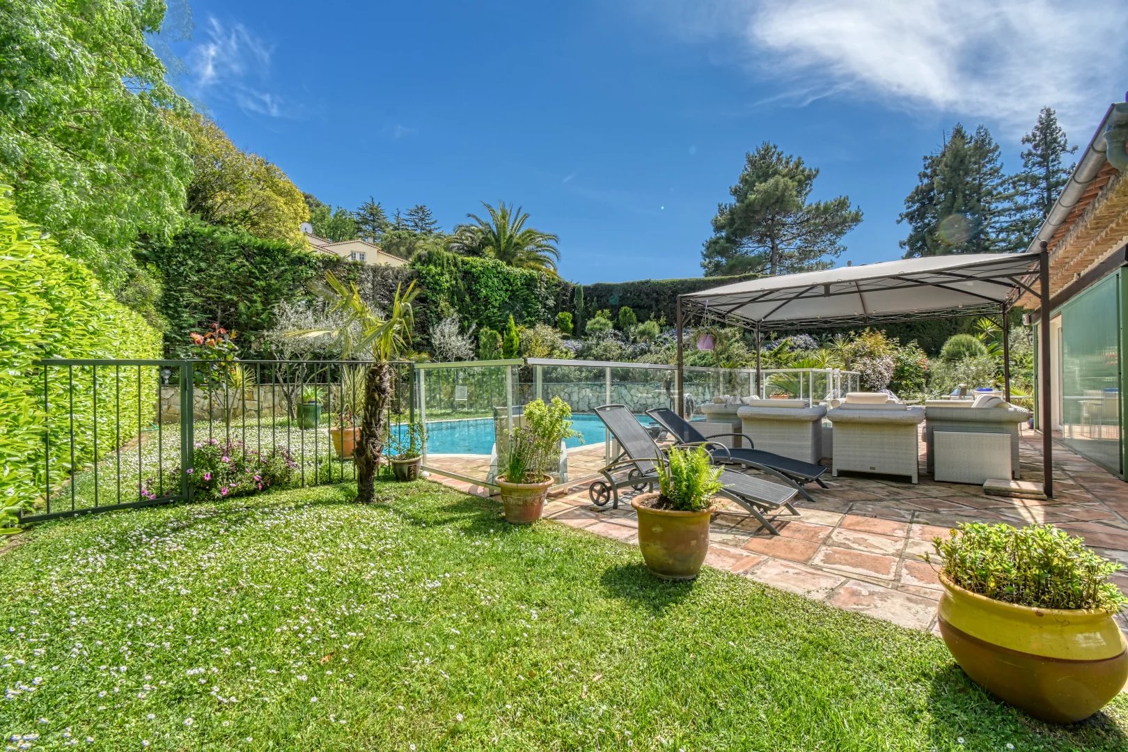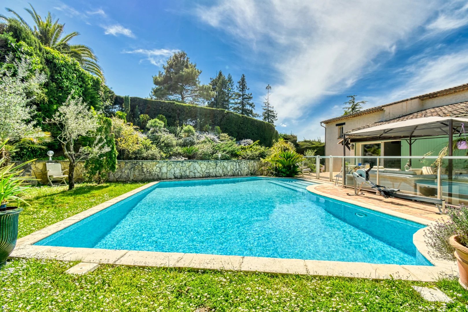 Only 15 minutes from Cannes and the beaches and the Mougins golf courses at 2 km away.