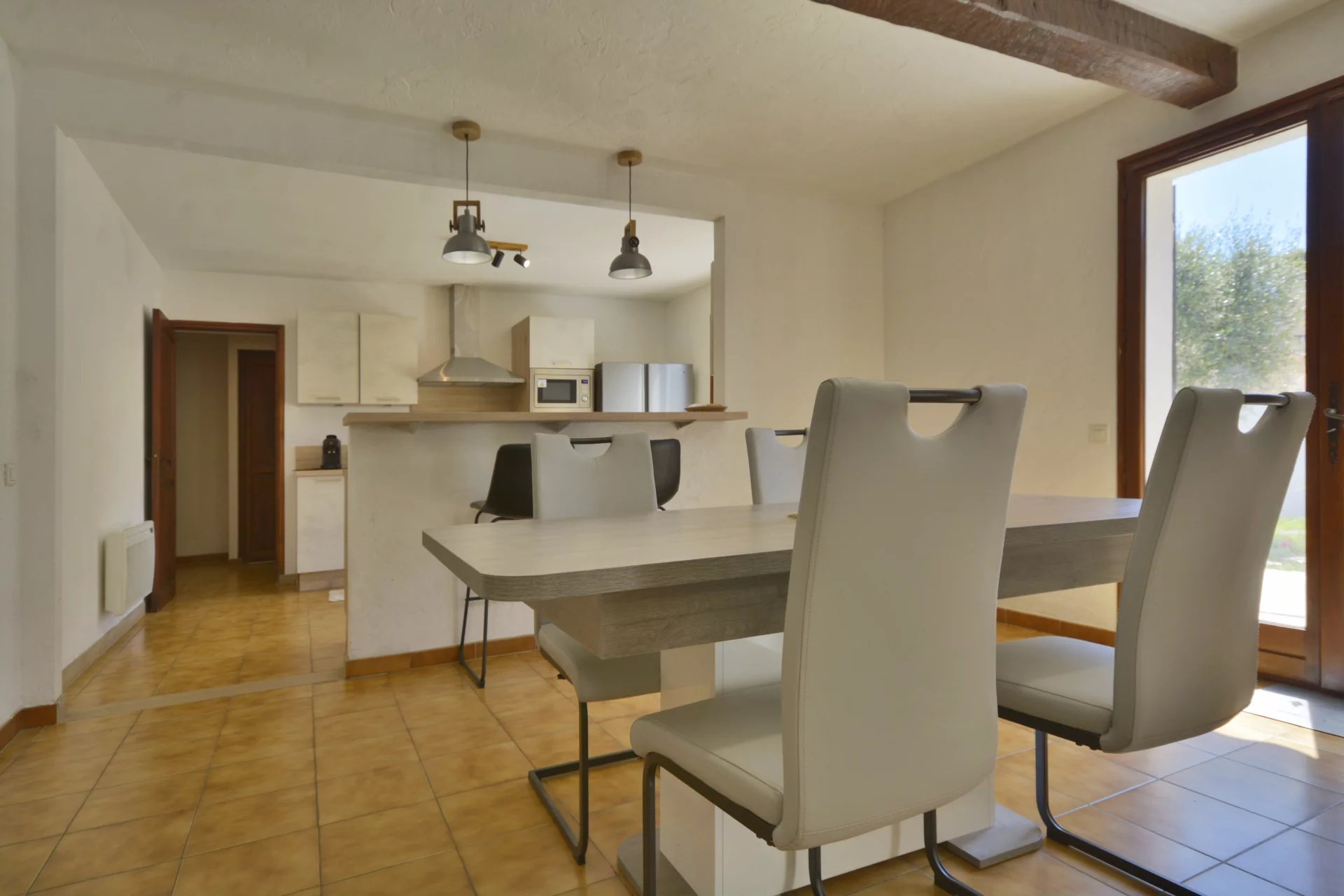 Set on a landscaped plot of 1,700 m2, the property enjoys excellent exposure and a well-designed layout suited for both year-round living and holiday use.