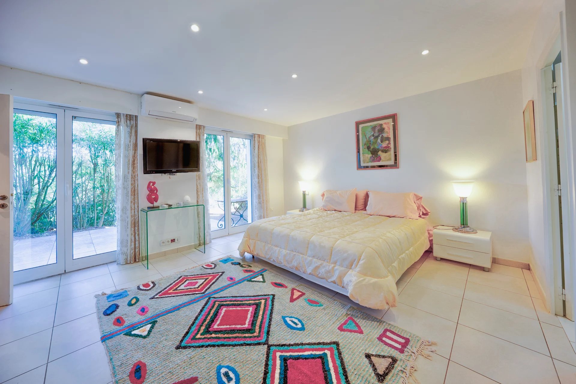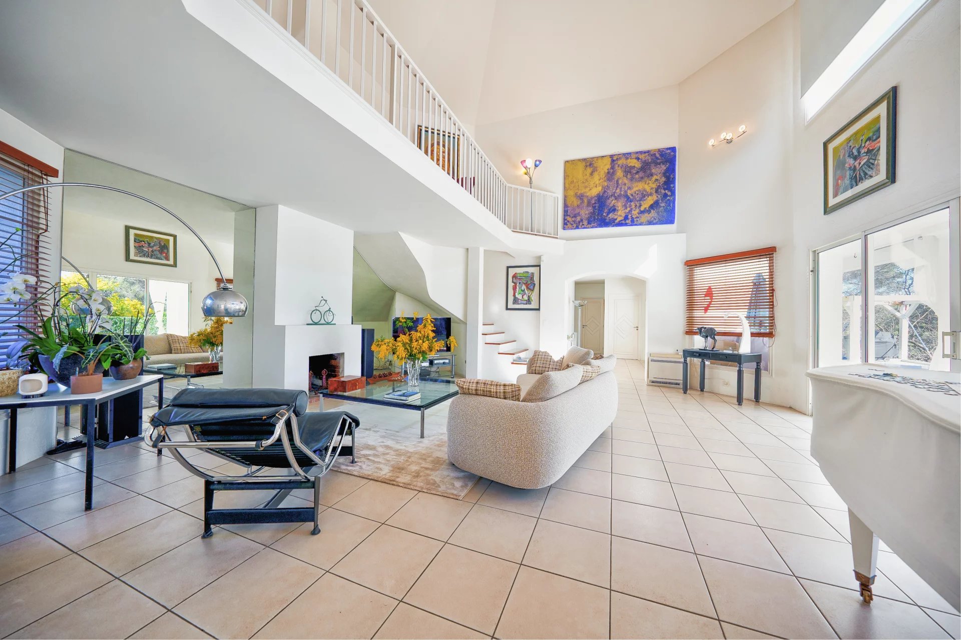 South-east facing, in absolute calm, it offers on three levels: a large and bright cathedral living room, dining room, kitchen and a mezzanine fitted out as a library. A master bedroom with bathroom en suite and access to the terrace, a dressing room and 3 other bedrooms with bathrooms en suite.