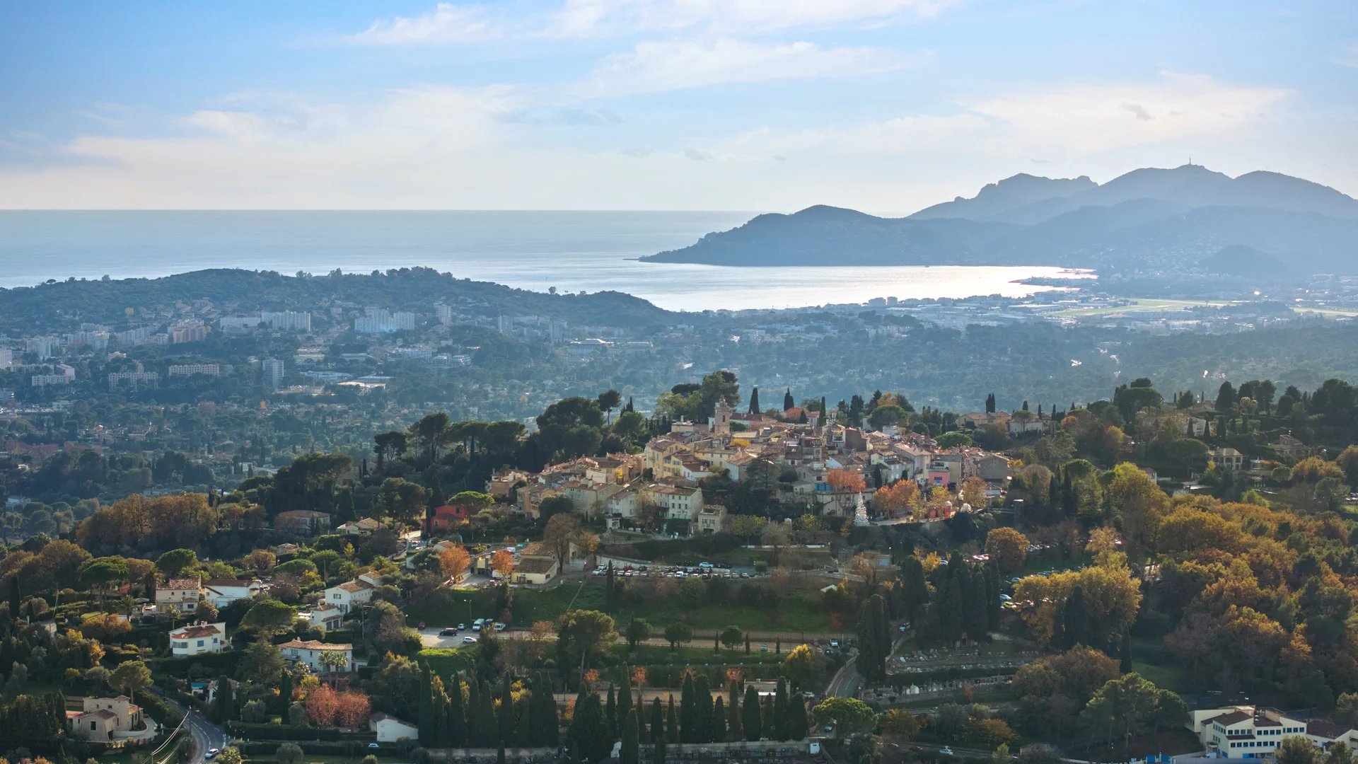 Benefiting from a rare address in one of the most sought-after areas of Mougins, this elegant property offers a spectacular view of the old village of Mougins, the surrounding hills, and a sea glimpse, providing a rare and privileged living environment.