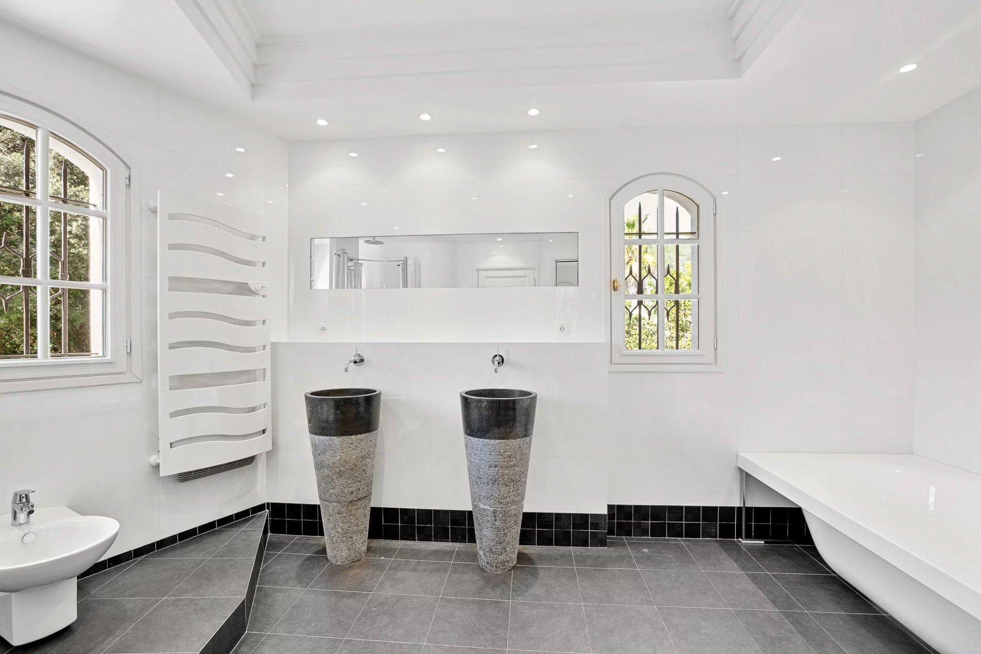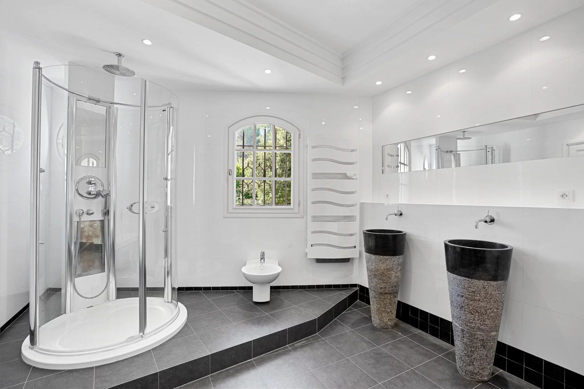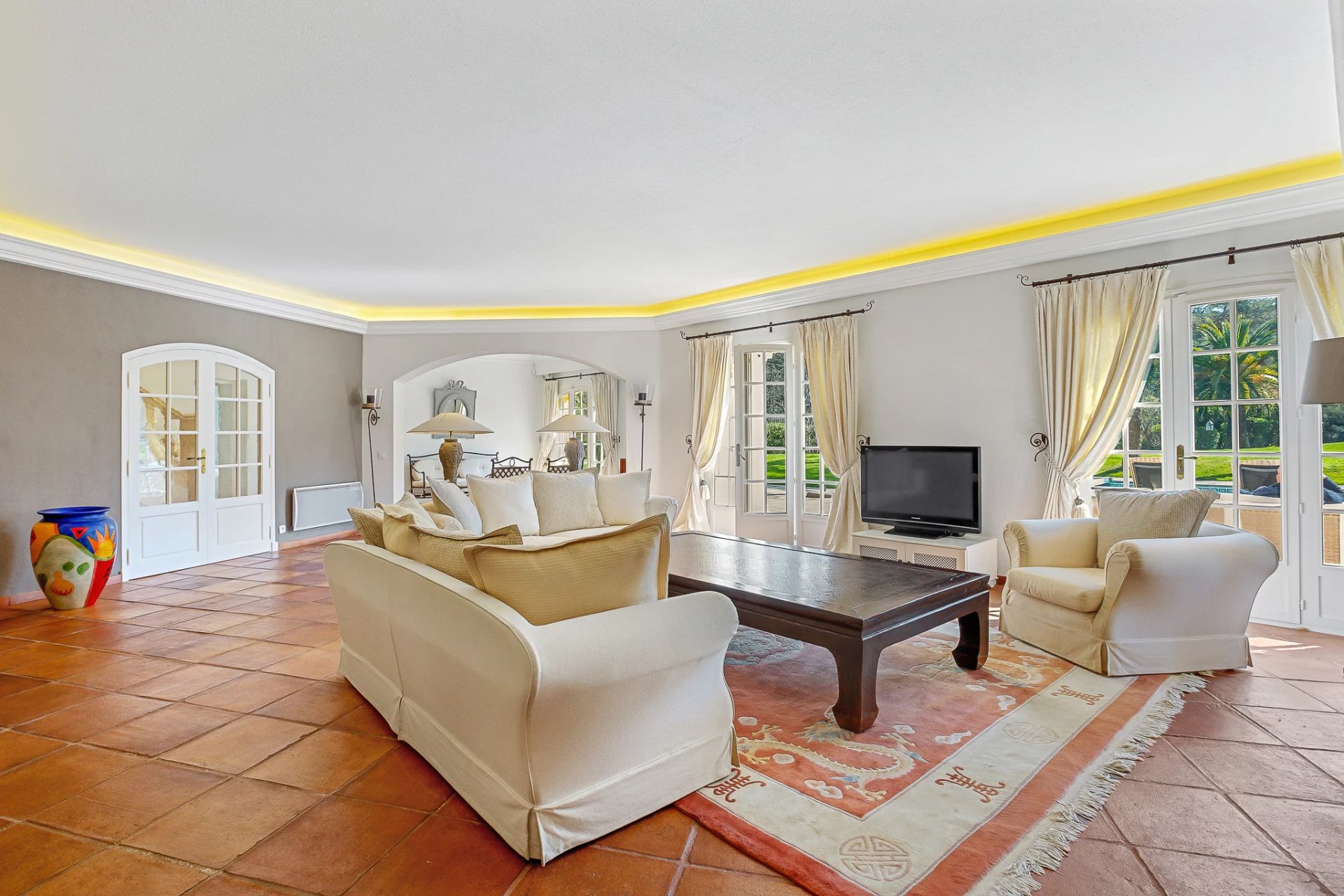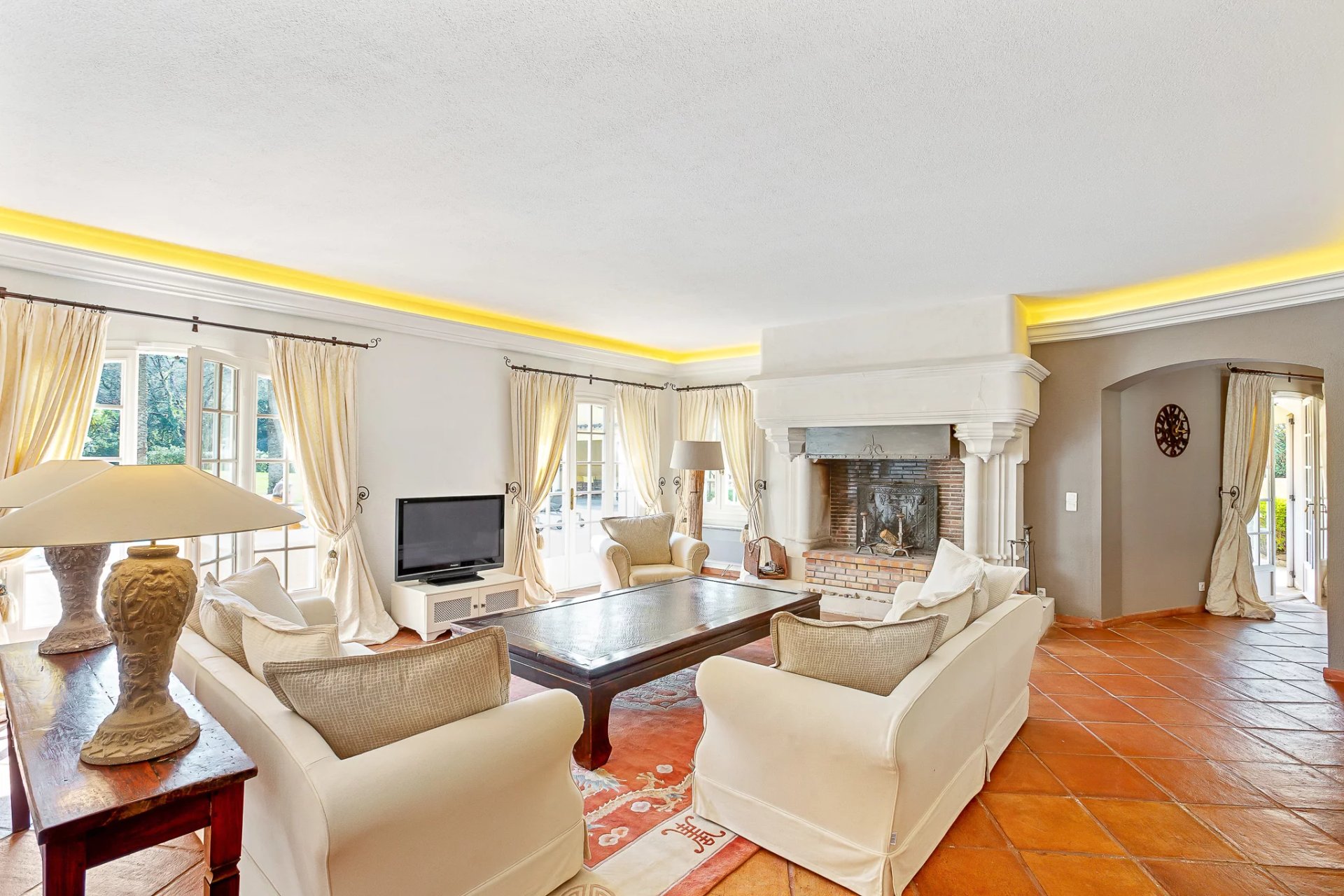 Located in a sought-after, secure neighborhood just minutes from Mougins village, this stunning quality villa offers over 270 m2 of living space (excluding annexes and basement) and is set on a private, enclosed plot of approximately 3000 m2, without any overlooking neighbors.
