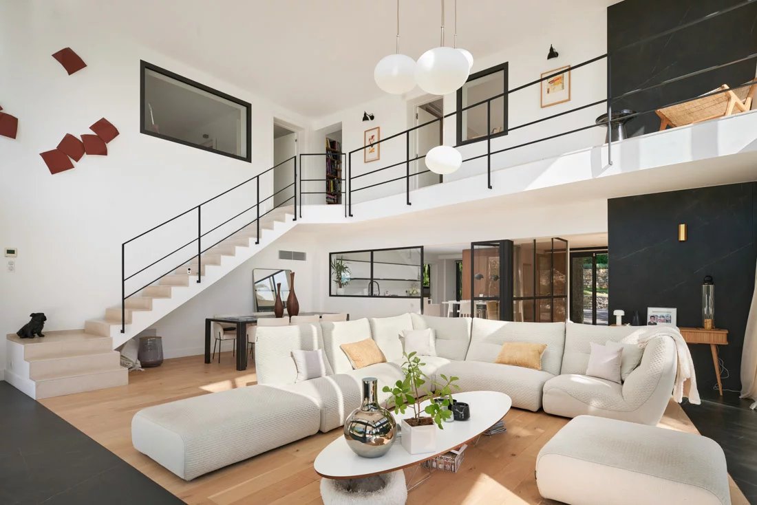 As soon as you arrive, you’ll be greeted by a remarkable entrance. The vast 60 m2 living room, bathed in light thanks to its 5-meter high ceilings, offers a grandiose living space, ideal for relaxing and entertaining. The separate 25 m2 kitchen is a functional work of art, opening onto a utility/laundry room.