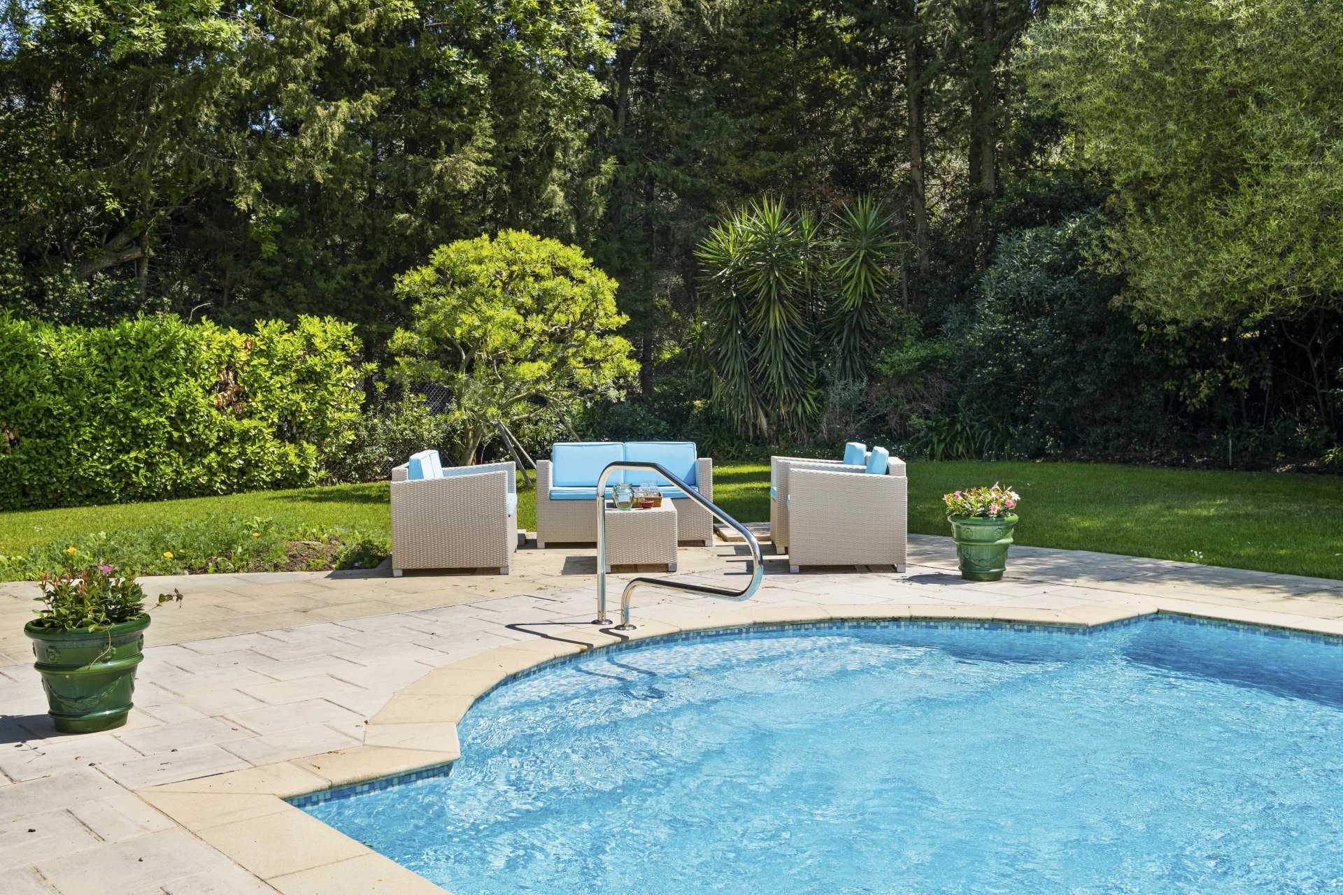 Built mainly on one level around the pool area, this villa offers five bedrooms, two of which are in the main building, 4 bathrooms and a shower room. A large basement to be converted offers many possibilities (wellness area, wine cellar, family room, etc.).