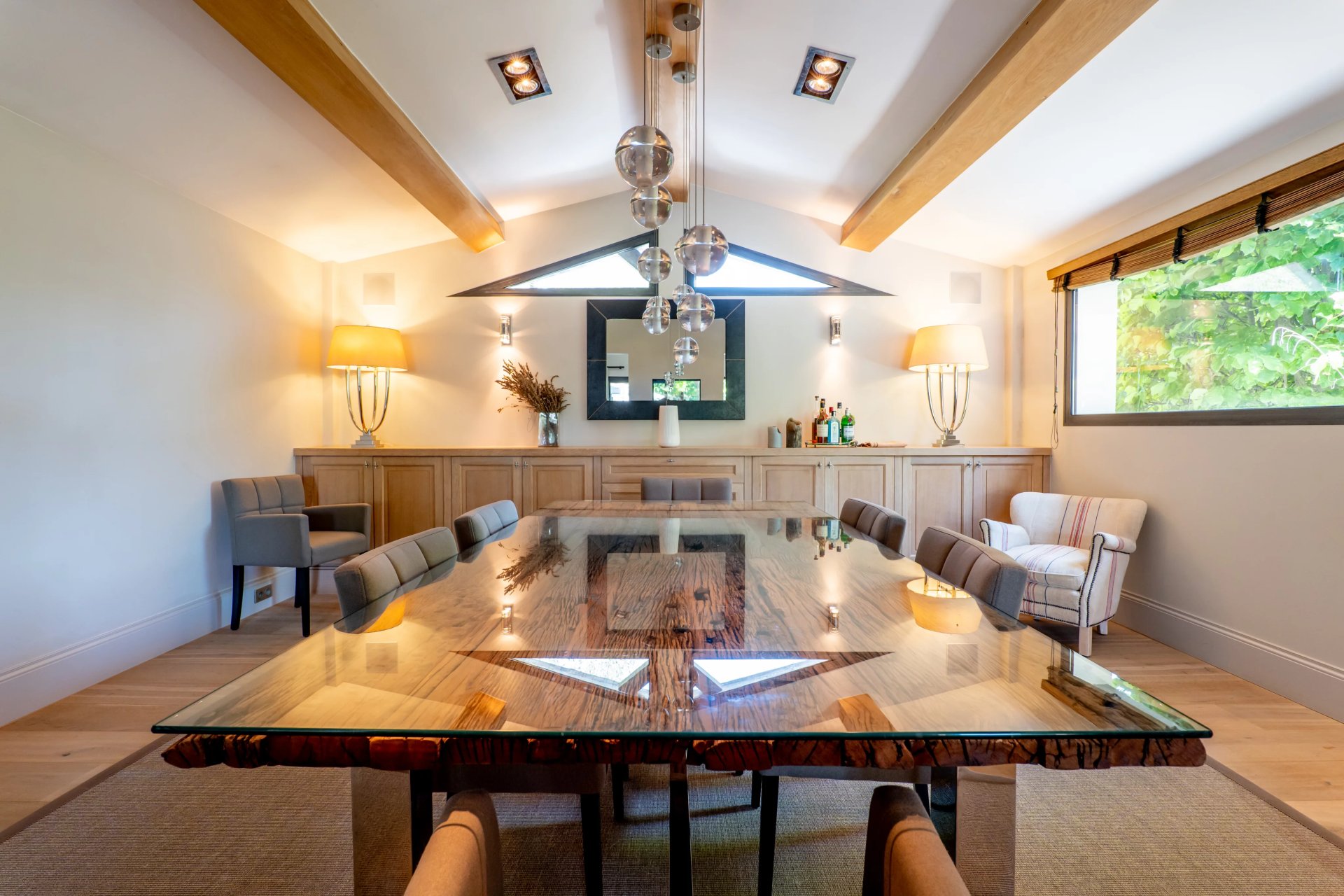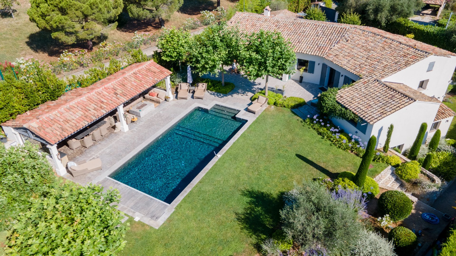At ground level, a superb reception room of about 70 sqm giving onto a covered terrace, the garden and the pool, 2 bedroom suites plus the master bedroom with its large dressing-room and full bathroom.