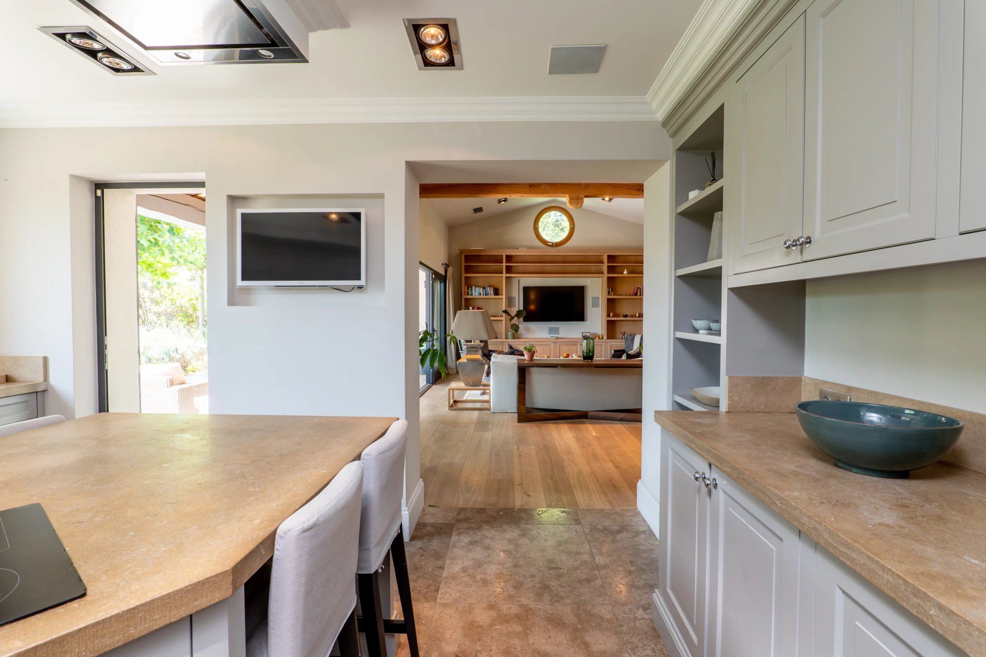 A fifth independent bedroom for guests with shower room and kitchenette.