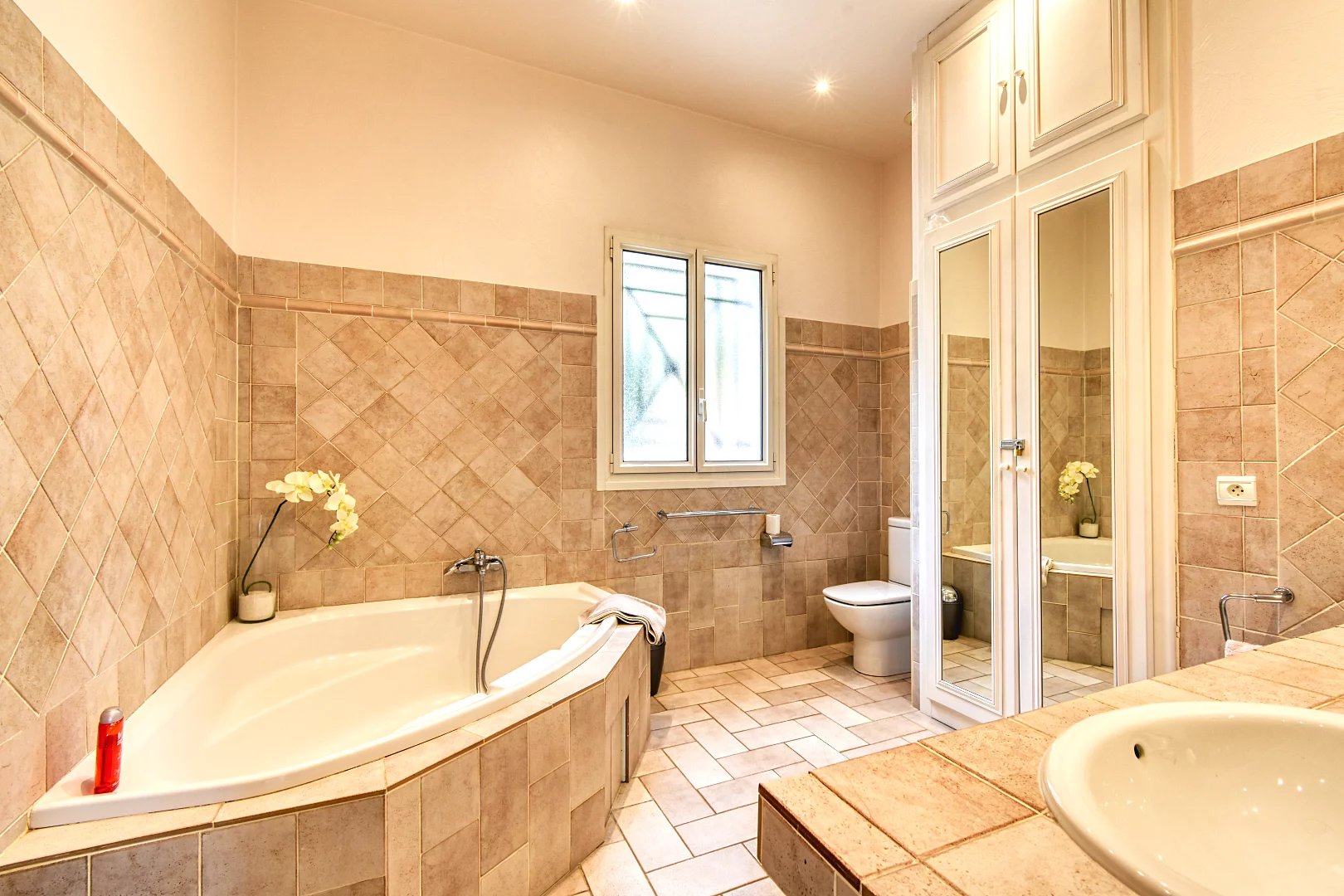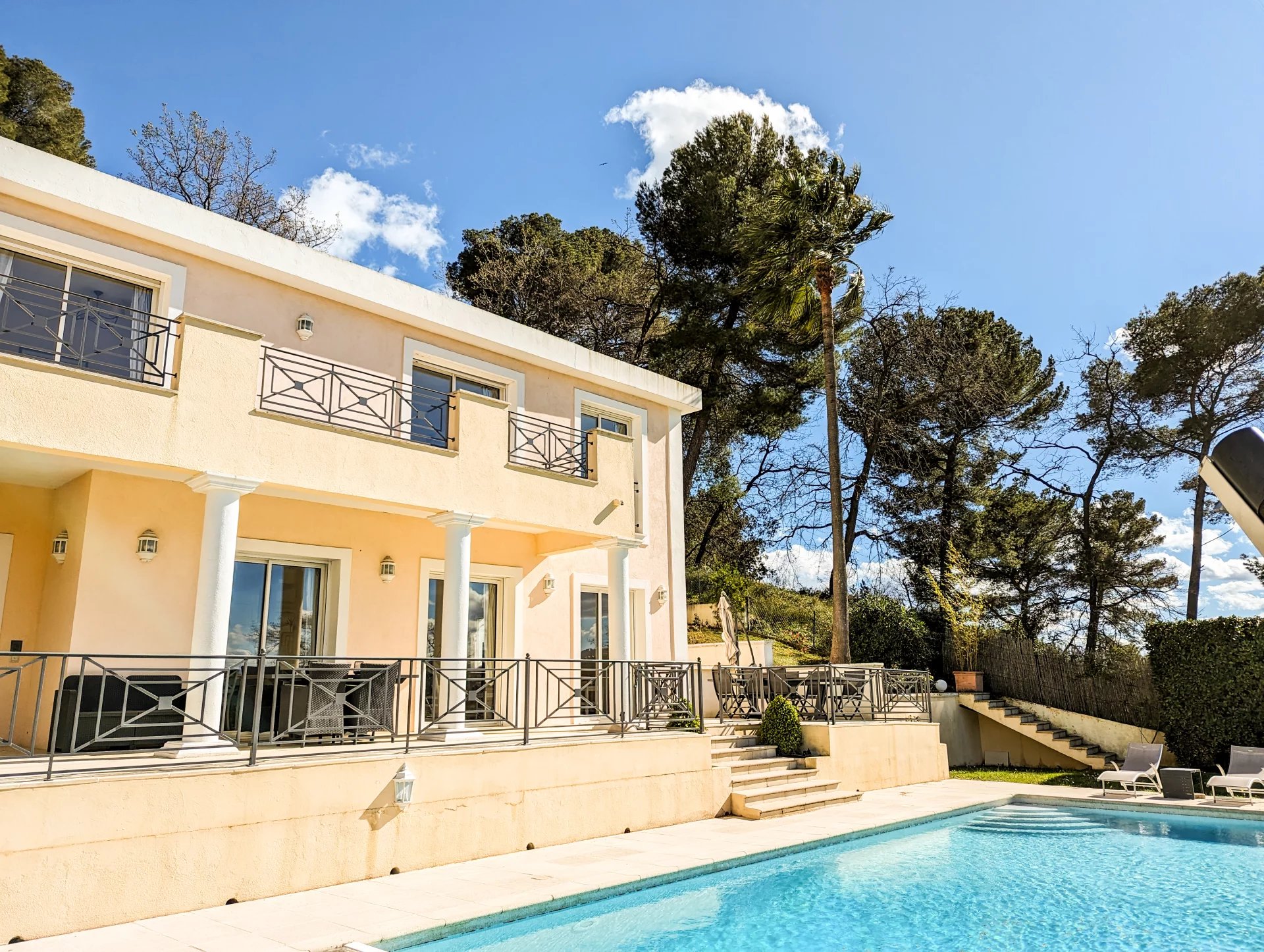 In the heart of the Royal Mougins Golf Club, in a secure estate, beautiful 228 m2 villa, nestled upon an enclosed and landscaped 1500 m2 plot in total peace and quiet, with panoramic views.