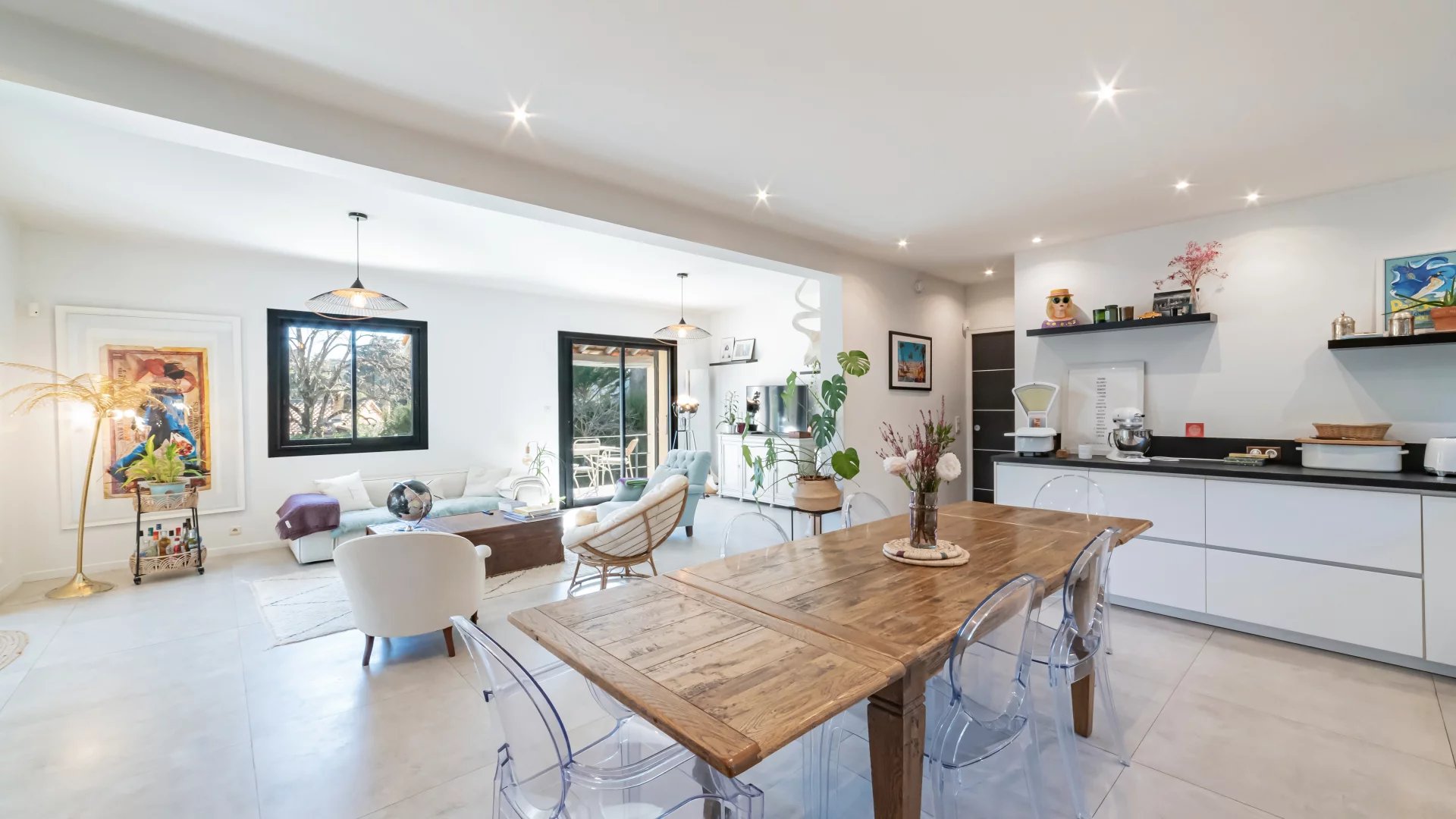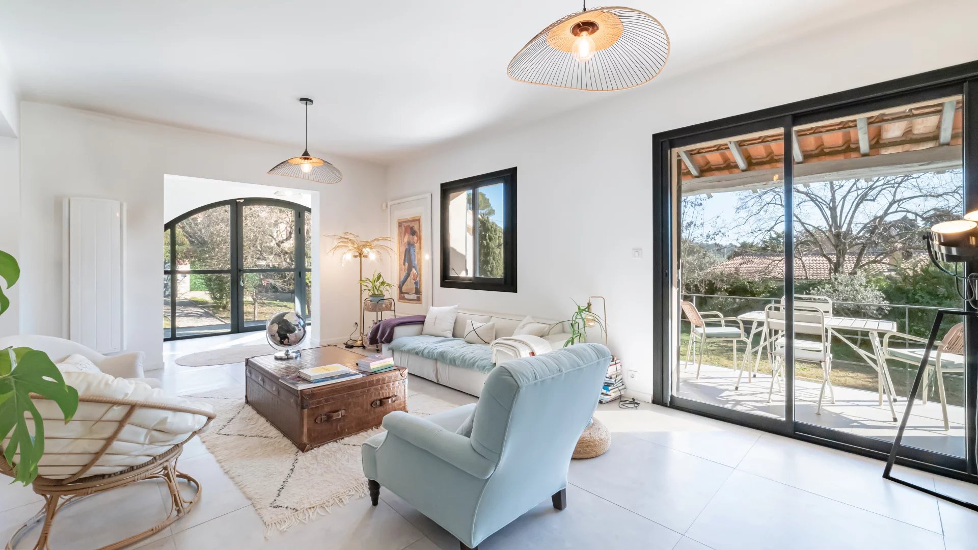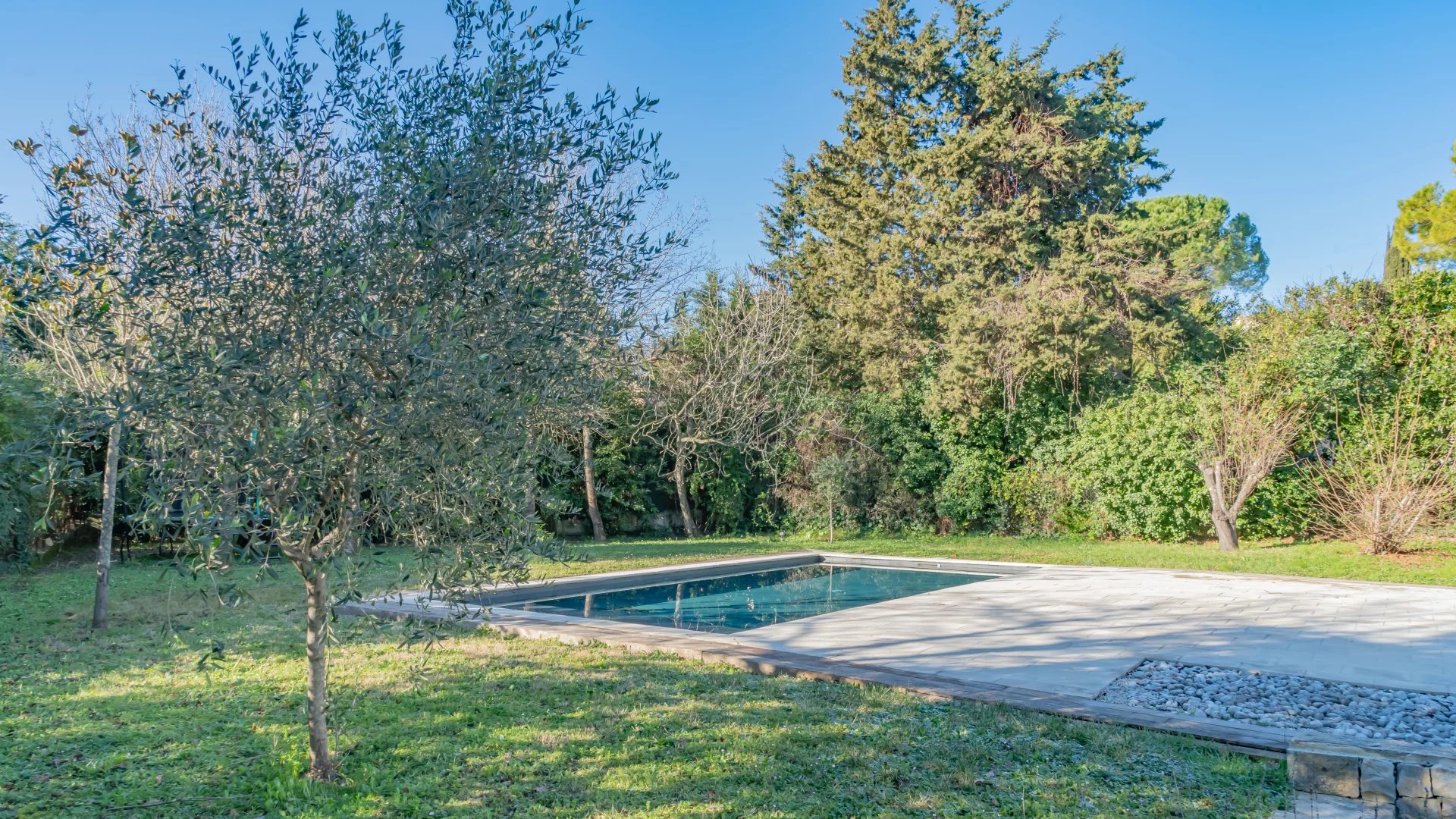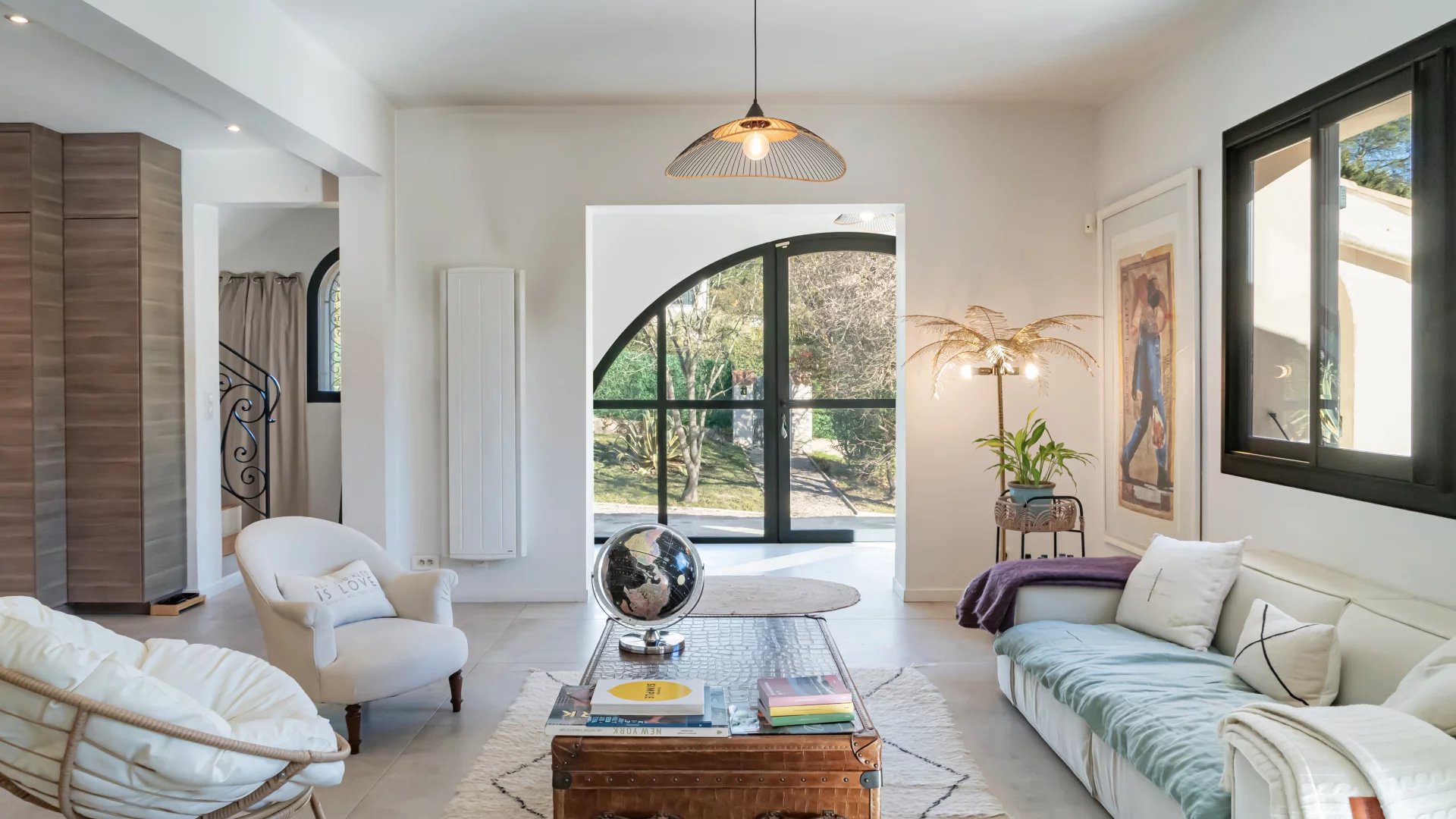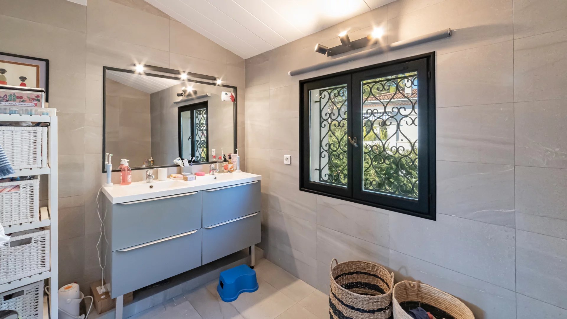 Nestled in a gated and sought-after domain, this villa enjoys a serene setting while being ideally located near a renowned golf course, Mougins School, and Sophia Antipolis.