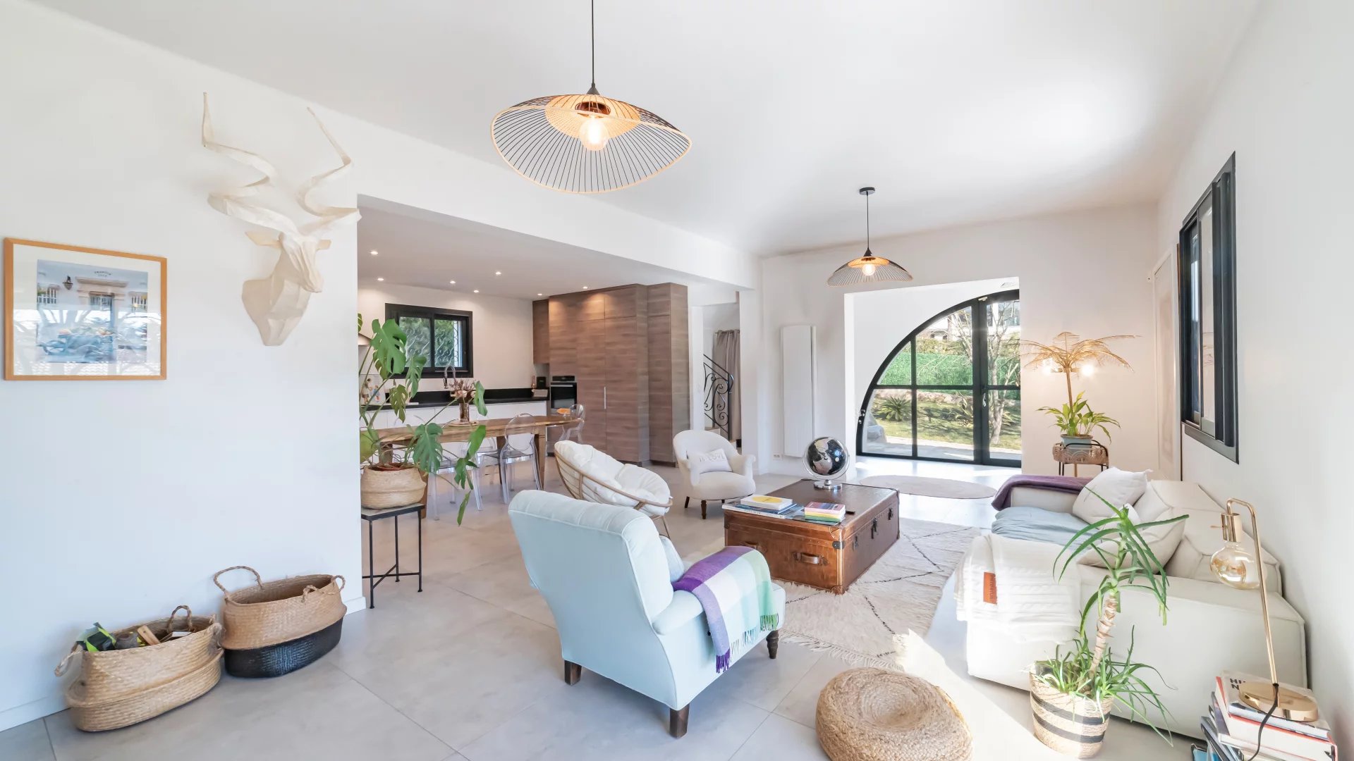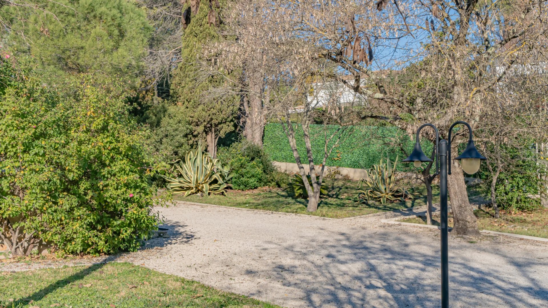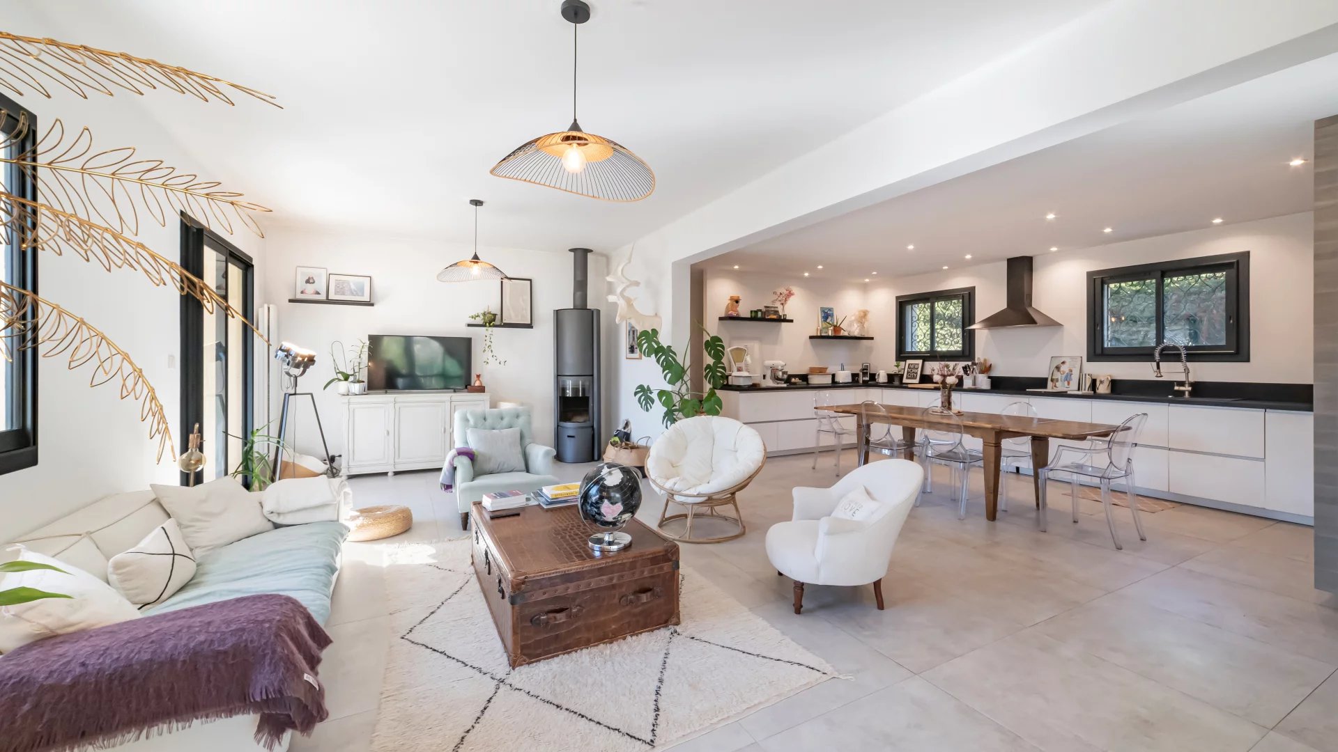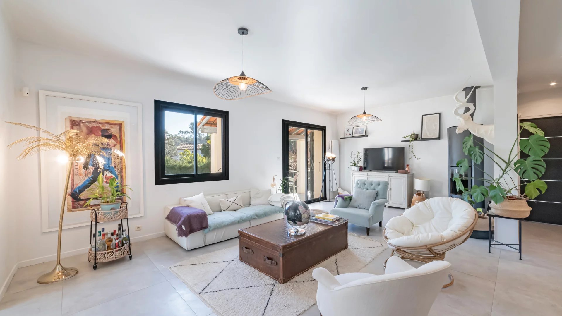 Nestled in a gated and sought-after domain, this villa enjoys a serene setting while being ideally located near a renowned golf course, Mougins School, and Sophia Antipolis.